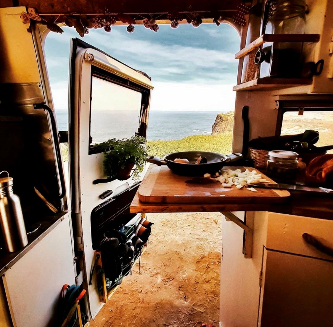 Verzichten möchten wir nicht mehr auf unsere Trocken-Trenn-Toilette, auf unseren Holzofen, Solarpanele und Standheizung. Und auch unsere Wasserfilteranlage, die es uns ermöglicht, immer Trinkwasser im Bus zu haben darf nicht fehlen. Nachhaltig und autark reisen, ist uns das Wichtigste. So können wir zwei Wochen autark stehen.