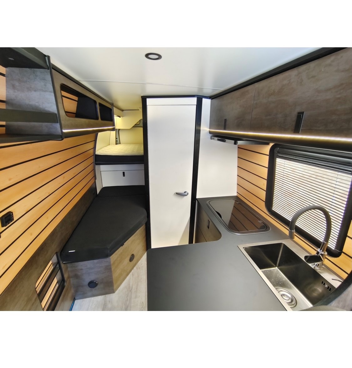 Wir haben das Layout entworfen und sie haben es in die Realität umgesetzt. Es bietet Platz für 5 Passagiere während der Fahrt und 6 Schlafplätze. Es gibt definitiv nicht viele Wohnmobile mit diesen Eigenschaften. Bevor wir die diesjährige Reise antraten, führten wir drei größere Upgrades durch: Wir haben einen Fünfer-Carbon-Schnorchel von Darc Expedition verbaut, wir tauschten unsere All-Road-Pirelli-Räder gegen die Off-Road-Trackmaster-Räder mit Aluminiumfelgen (ebenfalls von Darc Expedition) und schließlich installierte „Cultura Camper“ eine Verbreiterung an unserem Doppelbett, sodass wir nun 1,90 m Liegefläche haben.