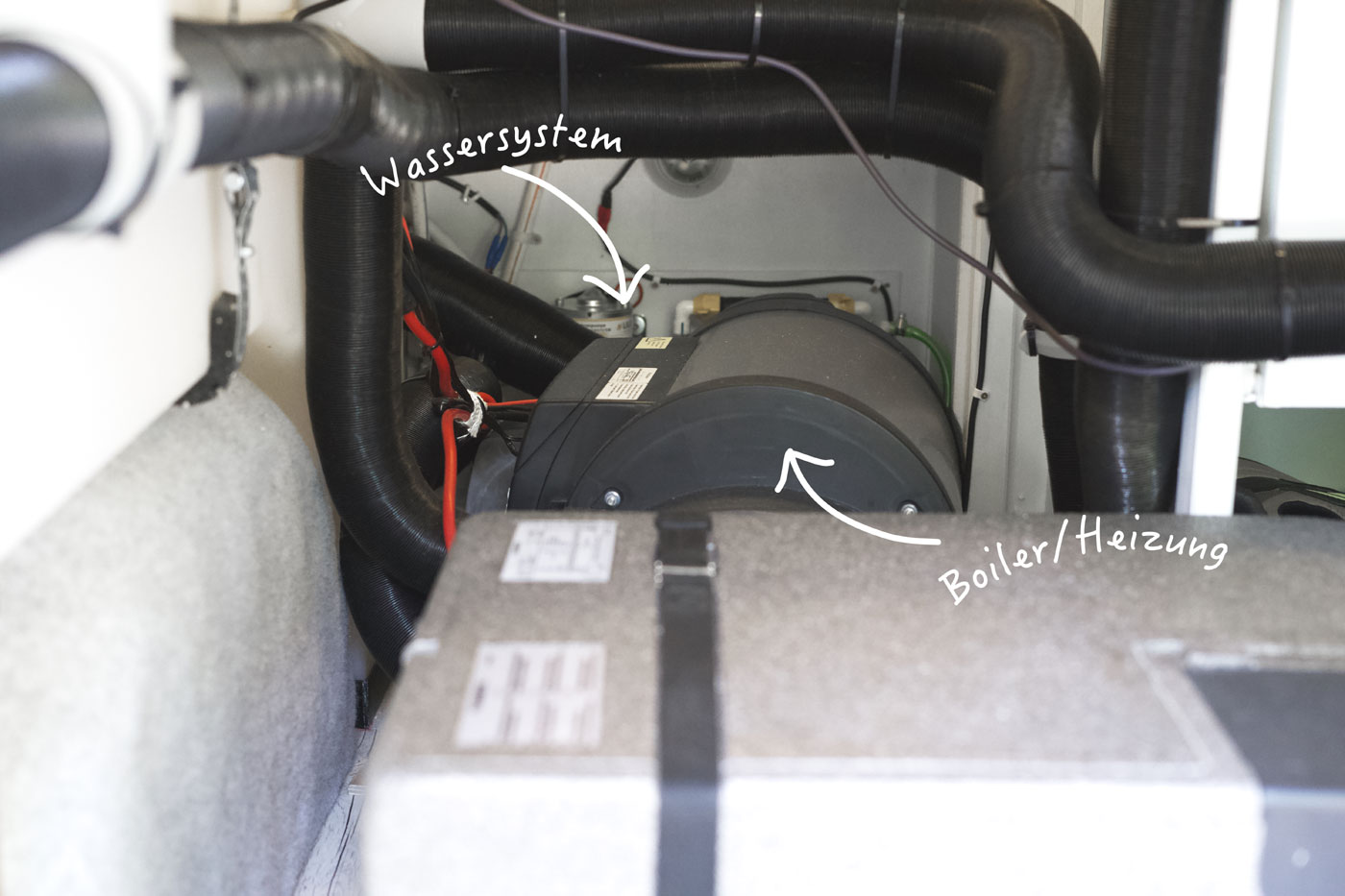 Ebenfalls unsere Diesel Standheizung/Boiler und unsere Elektro Standklimaanlage. Beim Vollzeit Leben im Van verbringen wir auch sehr viel Zeit im Inneren. Der Van selbst ist bereits ein sehr kleiner Lebensraum – daher ist es uns wichtig, dass wir die Temperatur in unserem kleinen Lebensraum auch nach unseren Bedürfnissen einstellen können und nicht frieren oder schwitzen müssen.
