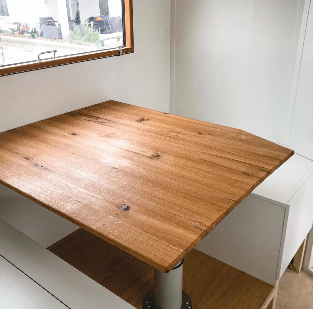 [adrotate group=“1″]Vom Zwischenrahmen und Reifenwechsel über die Elektrik und Wasser-Installation bis hin zum Möbelbau und dem Heckträger – bis jetzt ist alles (bis auf die Leerkabine und ein paar Schweißnähte) in Eigenregie entstanden. Auch unsere Fenster haben wir selbst gebaut.