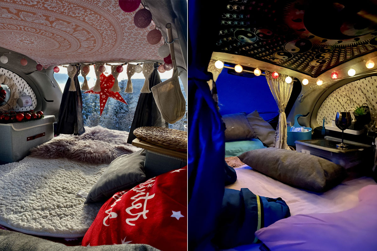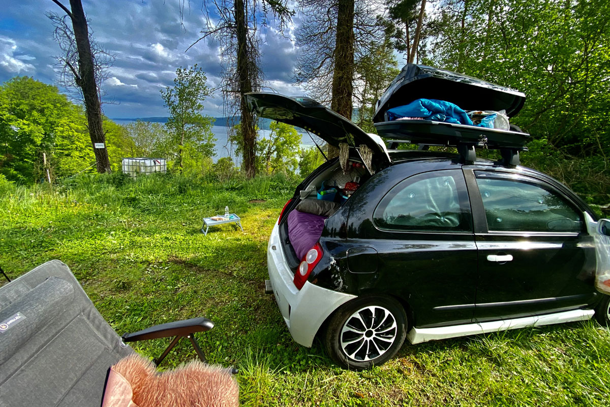 Früher war ich mit meinem Freund mit einem VW Bus beim Campen, kenne also auch die Vorteile eines größeren Campers. Trotzdem habe ich mich entschieden, meinen Micra, den ich schon einige Jahre hatte, umzubauen. Das ist jetzt drei Jahre her und für mich ist Billy der perfekte Camper. Man kann überall parken, es gibt keine Höhenbeschränkung und man ist relativ inkognito und wird nicht gleich als Camper erkannt.