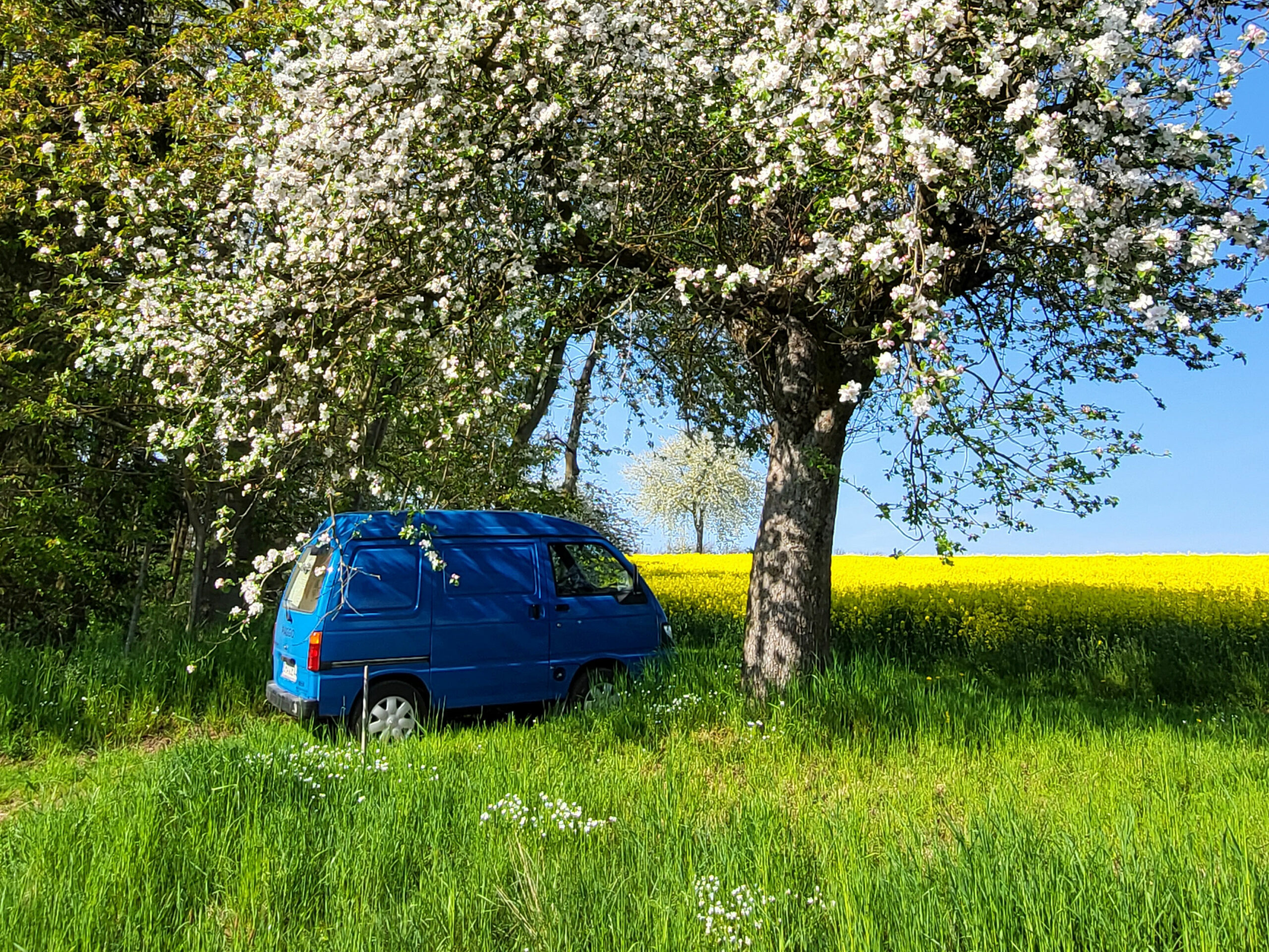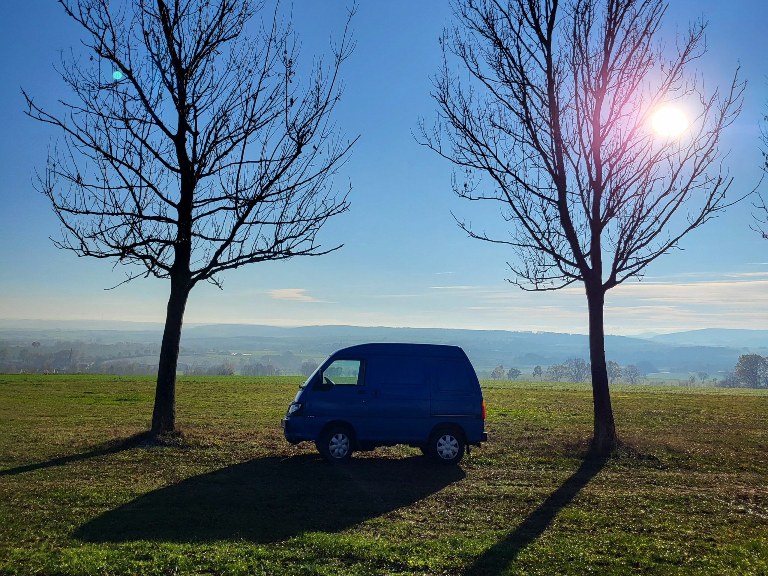 Ich bin mit einem Piaggio Porter S90 Baujahr 2021 unterwegs. Ein guter Freund sagte, nachdem ich ihm ein Foto zugeschickt hatte: Der macht einen Purzelbaum, wenn Du damit eine Vollbremsung hinlegst. So habe ich ihn Purzel getauft. Purzel war der vorletzte in Deutschland verfügbare Neuwagen. In der Pandemie waren gebrauchte Porter nicht zu bekommen und 2021 gab es ein Nachfolgemodell, was es nicht mehr als Kastenwagen gab bzw. gibt.