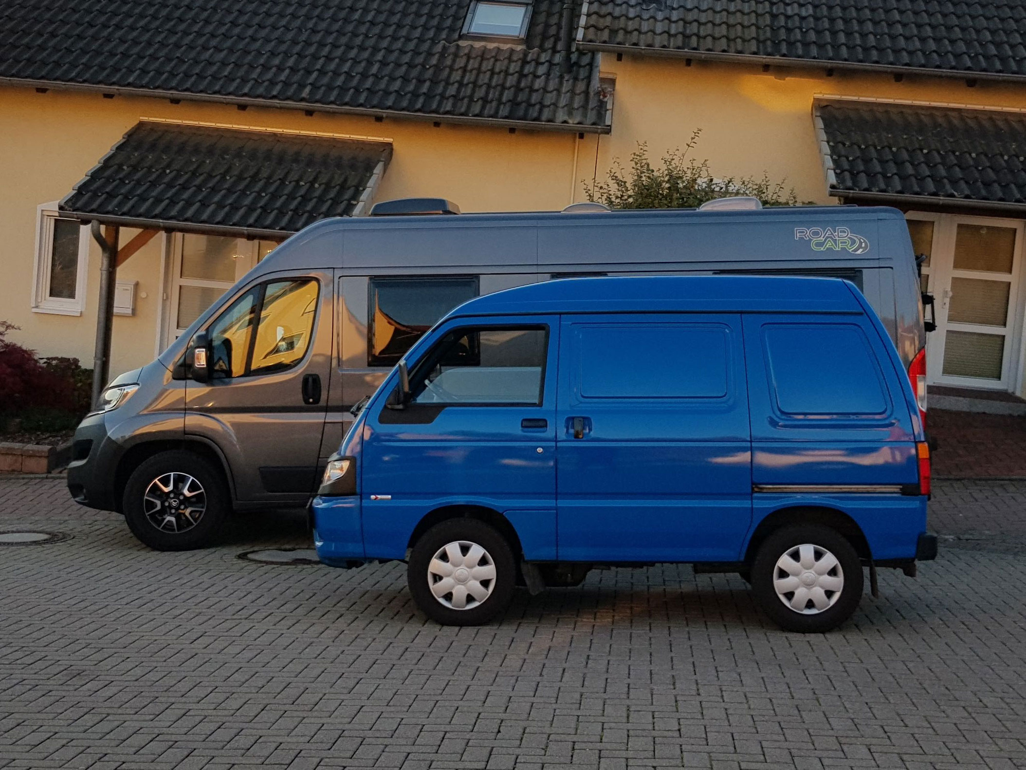 Purzel ist 1,35 breit und passt damit durch viele Begrenzungspoller, so kann man in Großstädten einige Wege verkürzen. Man darf sich bloß nicht erwischen lassen. Außerdem werden Purzel und ich im Straßenverkehr oft angelächelt, da die kleinen Porter einfach total süß sind. Ab und zu gab es auch schon mal eine „Welle“ an der Ampel von den wartenden Fußgängern. So etwas wäre in Japan natürlich undenkbar, denn dort gehören solch kleine Transporter Stadtbild, da sie hier steuerlich begünstigt werden.