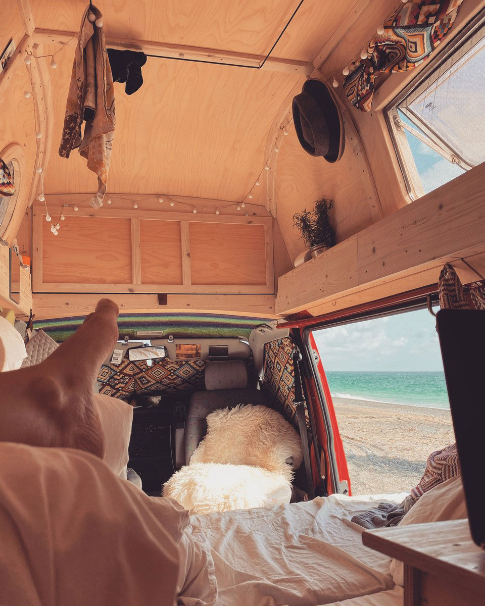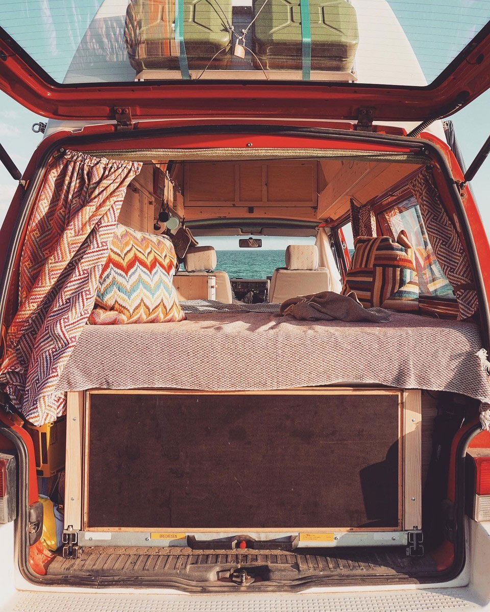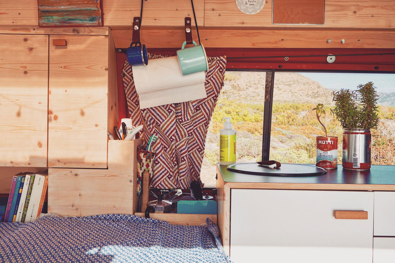 Nach unserem ersten Bus wussten wir genau, was wir noch zu ändern haben. Der Bus hatte anfangs kein Hochdach, das hat Finn zusammen mit seinem Vater montiert. Unser Beifahrersitz lässt sich nun nach hinten drehen und somit entstand ein völlig neues Raumgefühl. Zudem haben wir nun fließend Wasser an Board, was wir im ersten Bus auch nicht hatten. Auch unsere Fenster im Hochdach ist nicht mehr wegzudenken und wir fragen uns, wie wir die Sommer im ersten Bus überlebt haben. Dieser zweite Busausbau ist so gut auf uns abgestimmt, dass wir bisher nichts gefunden haben, was wir ändern würden.