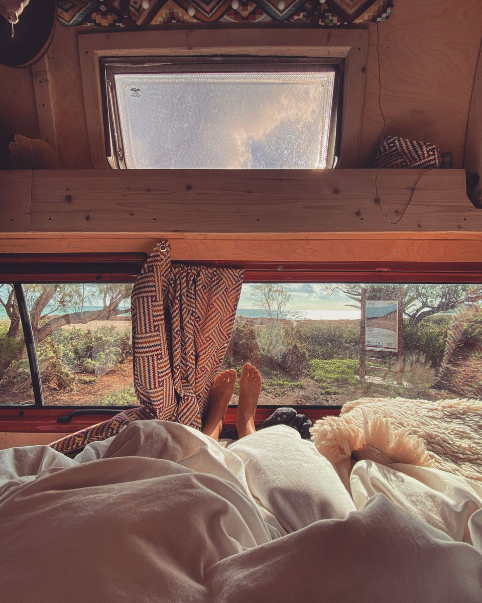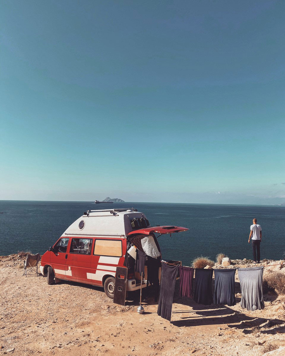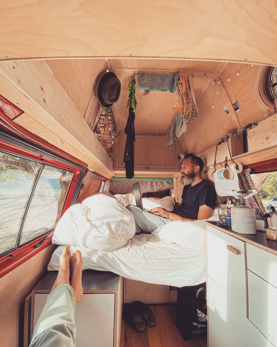 Nach unserem ersten Bus wussten wir genau, was wir noch zu ändern haben. Der Bus hatte anfangs kein Hochdach, das hat Finn zusammen mit seinem Vater montiert. Unser Beifahrersitz lässt sich nun nach hinten drehen und somit entstand ein völlig neues Raumgefühl. Zudem haben wir nun fließend Wasser an Board, was wir im ersten Bus auch nicht hatten. Auch unsere Fenster im Hochdach ist nicht mehr wegzudenken und wir fragen uns, wie wir die Sommer im ersten Bus überlebt haben. Dieser zweite Busausbau ist so gut auf uns abgestimmt, dass wir bisher nichts gefunden haben, was wir ändern würden.
