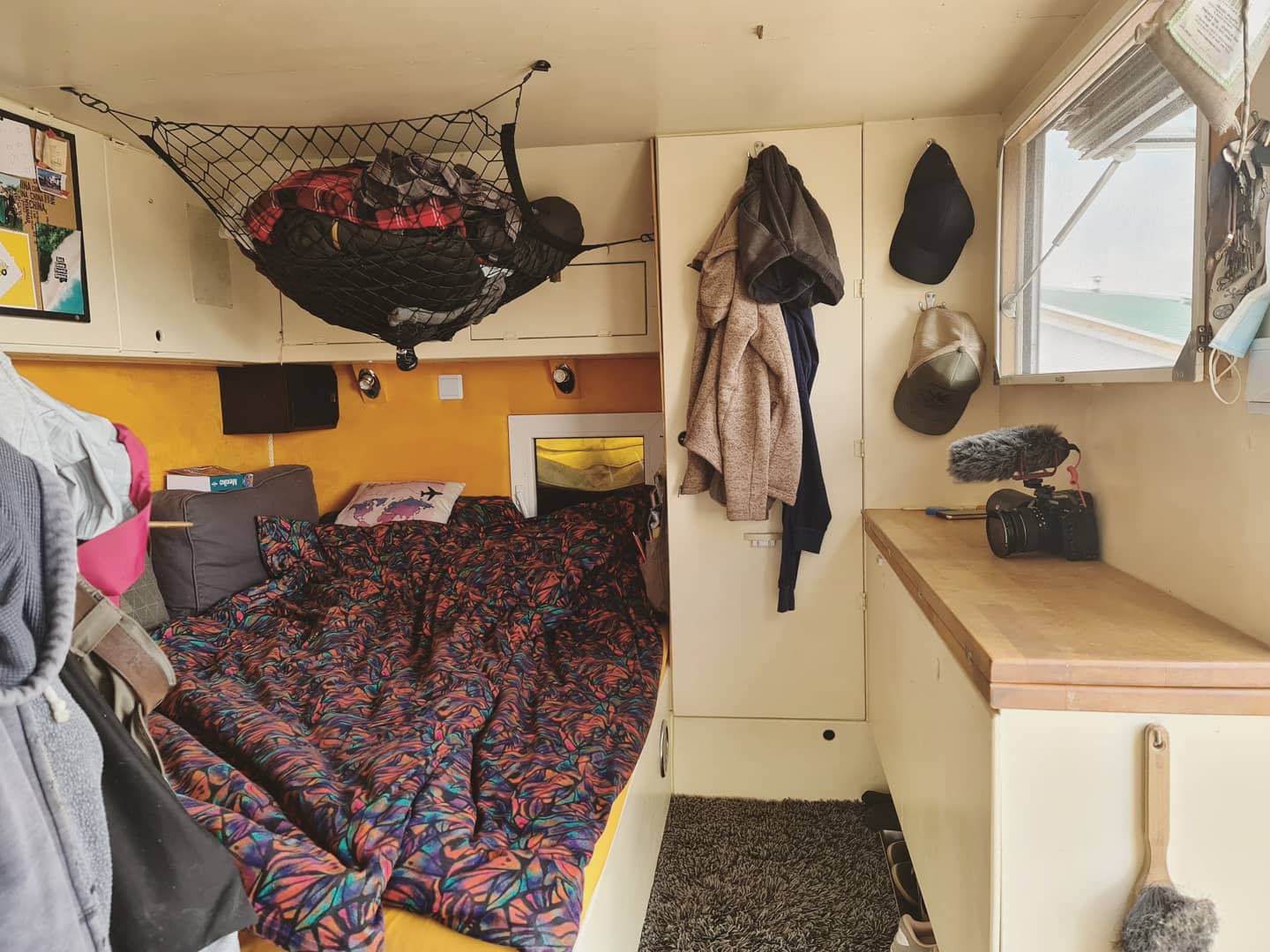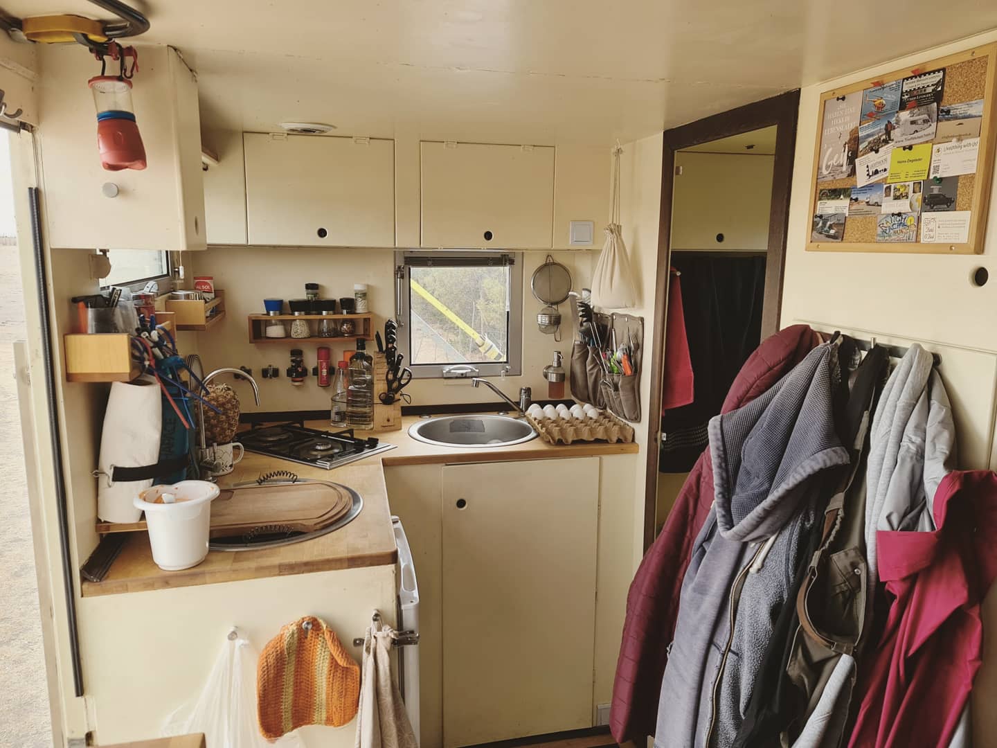 Glücklicherweise haben wir genügend Platz, sodass wir auf unserer Reise so ziemlich alles dabei haben, was machen brauchen kann 😊 Stühle, Tisch, Dreibein Grill, unsere eigene entworfene Feuerschale, Solartischlicht, Harpune, Beil, Säge, Angel, Hängematten, Marshmallow-Stick, Tauchausrüstung, Kajak.