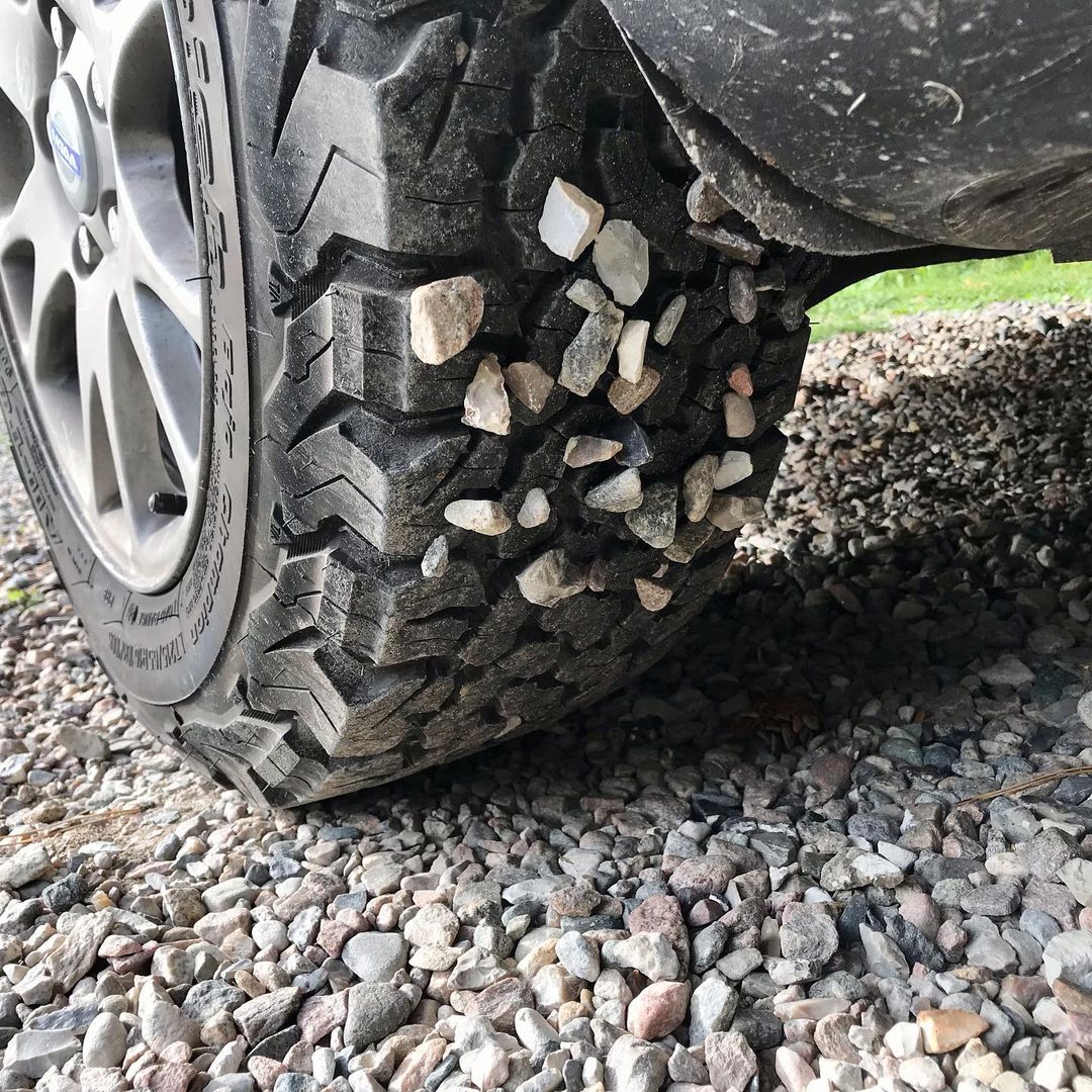 Die Reifen wurden gleich zu Beginn auf K02 (215|65R16) AT Reifen von BF Goodrich gewechselt. Wir lieben nicht nur den Look, sondern auch die Performance auf und abseits von befestigen Straßen (Die Eskalation ist: Reifen – Reifendruck – Bergebretter – Allrad) und die Kennzeichnung als Ganzjahresreifen. Wir nutzen sie nun schon seit ca. 70.000 km und sind wirklich happy damit.