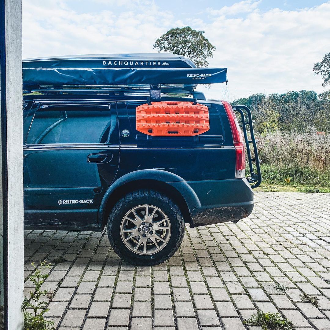 An den hinteren Seiten befindet sich ein Multirail, an dem momentan zwei Maxtrax Recovery Boards befestigt sind. Diese dienen in erster Linie für Situationen, in denen wir oder andere sich festgefahren haben, aber auch um das Fahrzeug zur Nacht auszunivelieren. Als neueste Errungenschaft ist ein Top Head Lift Kit (1“) von Vikingstål Motor aus Schweden montiert wurden. Das gibt zusätzliche 25 mm an echter Bodenfreiheit und in Zukunft Platz für größere Reifen (215|70R16). Als Schutz vor Steinen, Ästen, etc. haben wir ein Unterfahrschutz der Firma Hexprotect aus 3 mm beschichtetem Stahl verbaut (Vielleicht interessant für Eure Community: mit dem Code: XC70_OVERLANDER10 bekommt ihr 10% Rabatt auf alle Unterfahrschutze – Wir bekommen da tatsächlich nichts für, aber vielleicht ja interessant für einige die noch keinen haben).