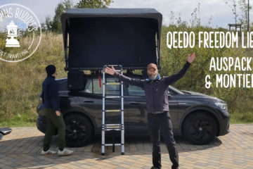 Begonnen haben wir natürlich mit einem Dachzelt von AUTOHOME. Das liegt nahe, da wir aus unserer Leidenschaft eine Firma gegründet haben. Mit DACHQUARTIER vertreiben wir AUTOHOME Dachzelte und geben Tipps und Tricks für das Reisen mit dem multifunktionalen Reisemobil. Momentan nutzen wir das AIRTOP plus in der Größe Small (130×210), da es super schnell aufzubauen ist, gutes Zubehör auch für regnerische Tage bietet und optisch gut auf das Auto passt. Eine Rhino-Rack Batwing 270° Markise (2500 mm) haben wir gegen die klassische Auslegermarkise Sunseeker III (2500 mm) getauscht. Grund hierfür ist, dass wir Ove mit einer Heckleiter bestückt haben (unserer Recherche nach, sind wir damit die ersten). Somit sparen wir uns die Leiter für das Dachzelt.