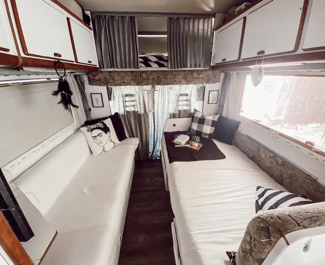Wir hatten schon lange den Traum, ein „altes“ Wohnmobil zu fahren. Wenn wir auf der Straße so eins gesehen haben, ging uns immer das Herz auf. Unser Fritzi war ein echter Glücksgriff. Wir haben alles darin aufgehübscht. Das Wohnmobil war in einem super Zustand. Wir konnten also direkt anfangen es nach unserem Geschmack zu gestalten. Es wurde foliert, gestrichen, der Boden erneuert und dekoriert. Auch die Polster haben wir selbst neu bezogen. Technisch steht jetzt als nächstes eigentlich nur der Zahnriehmen an.