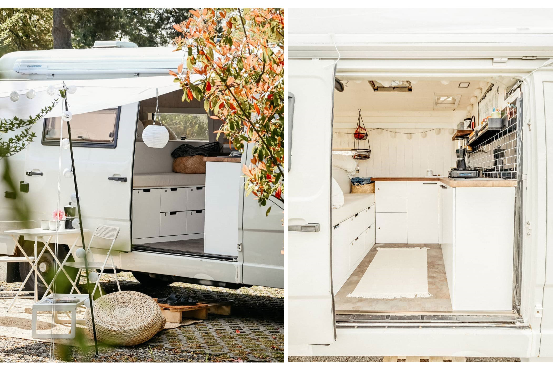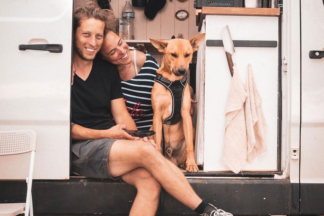 - Milena, Leo und ihr selbst ausgebauter Sprinter-Campervan