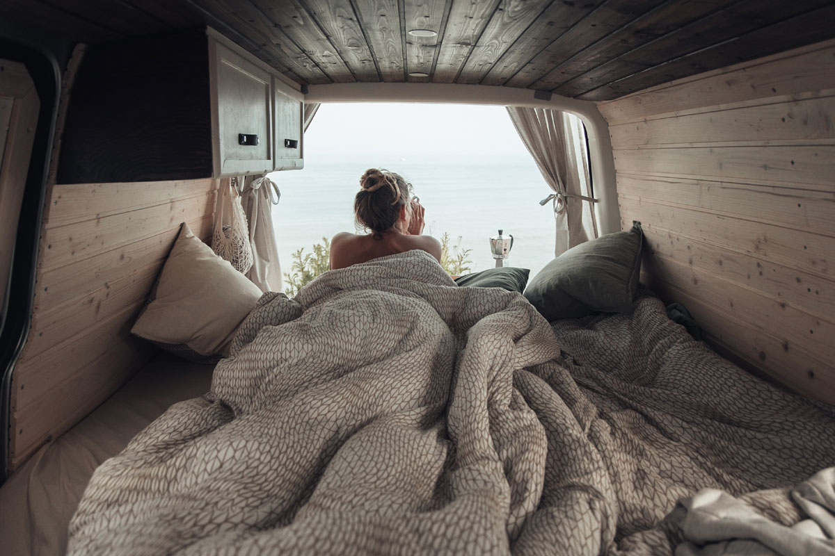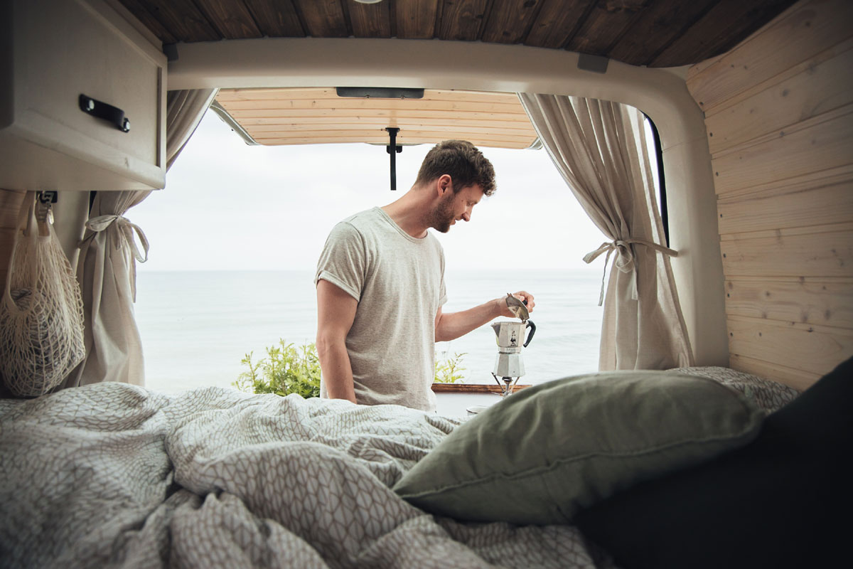 Leider können wir uns nicht rühmen, Wilma selbst ausgebaut zu haben. Diesen elementaren Teil haben dankenswerter meine Eltern übernommen. Trotzdem sind wir mächtig stolz auf das Ergebnis. Vor allem auf die Gemütlichkeit und das 1,60×1,95 Meter große Bett. Die größte Herausforderung – und damit hätten wir gar nicht gerechnet – war definitiv der Einbau des Dachfensters. Durch diese doofen Rillen im T5-Dach war das ein echter Gewaltakt.