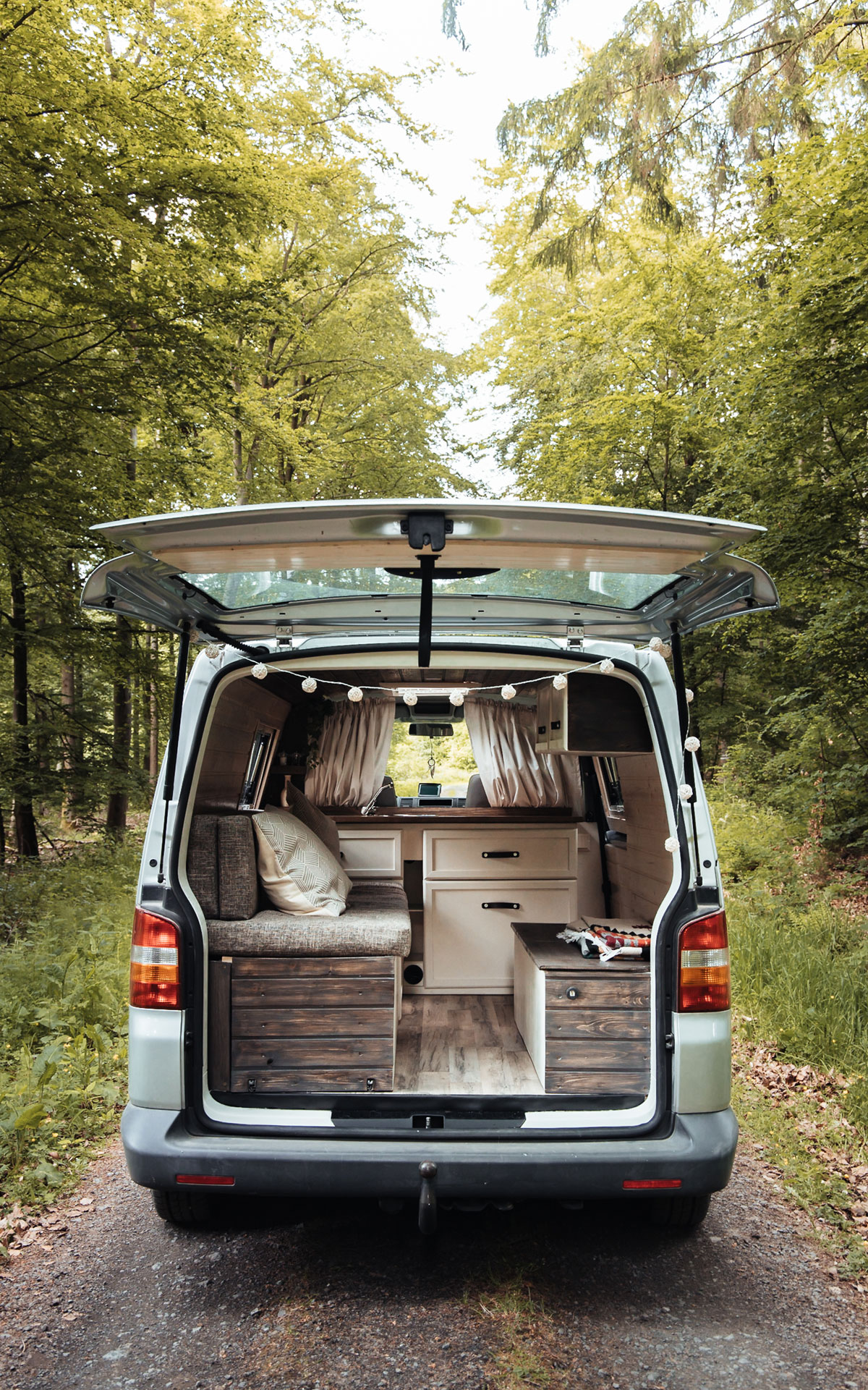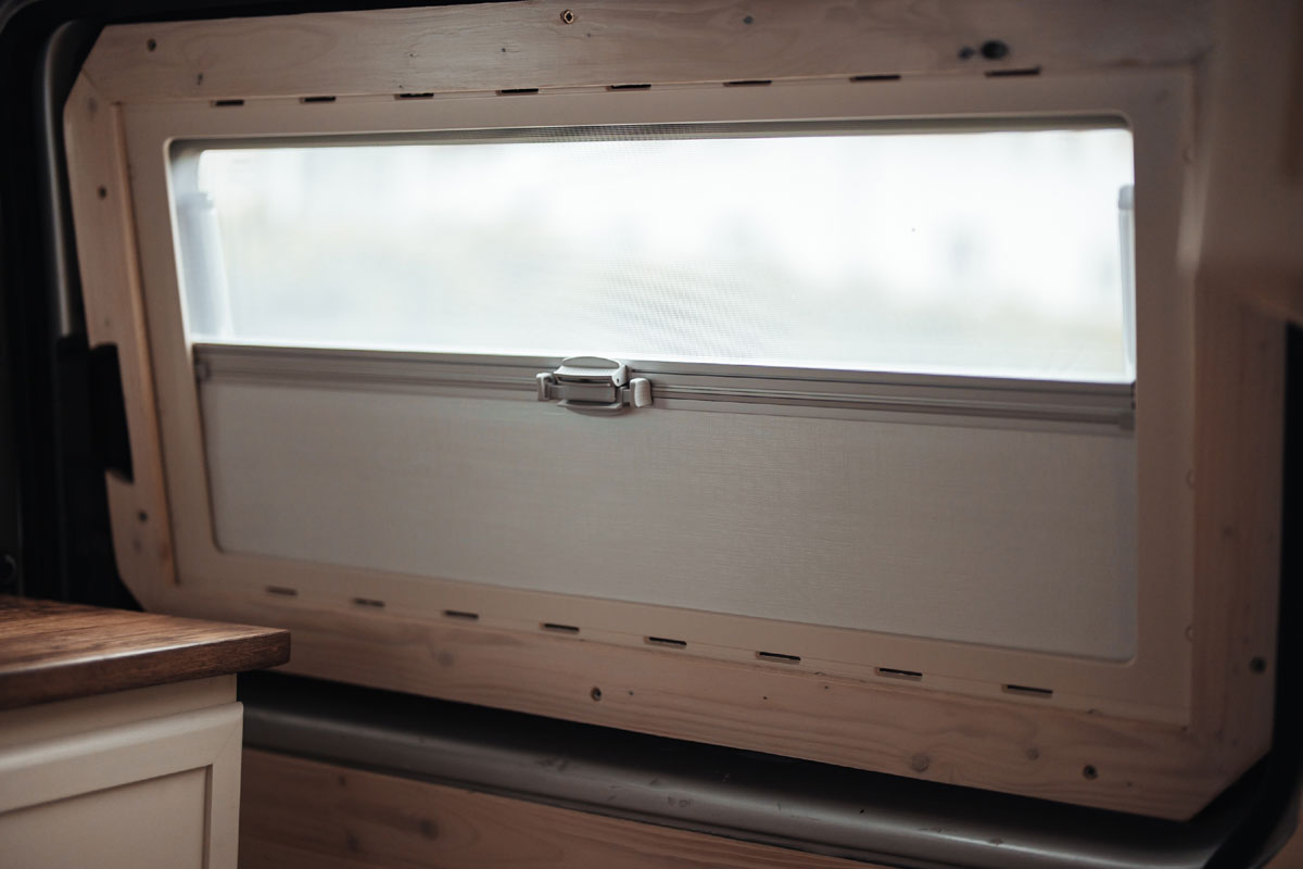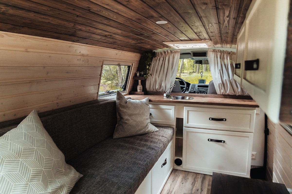 Nach einer sechsmonatigen Suche haben wir Wilma schließlich auf Ebay Kleinanzeigen gefunden. Zu diesem Zeitpunkt hatte sie nur 120.000 Kilometer drauf und gehörte einem Malereibetrieb. Nach dem Umbau ist sie als Wohnmobil zugelassen, hat eine Standheizung, eine 26 Liter Kühlbox, ein Spülbecken, einen 70 Liter-Wassertank, eine zweite Batterie, einen Dachträger mit Solaranlage und zusätzlichem 40 Liter Tank (mit Duschbrause) und drei Fenster mehr.