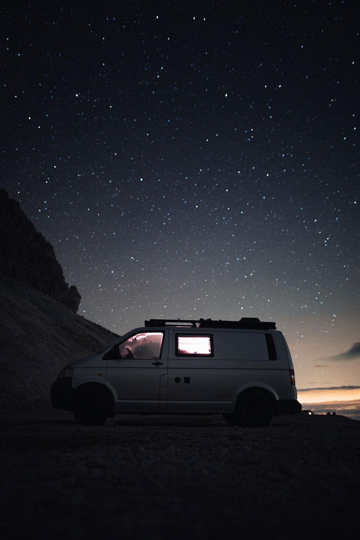 Da uns beiden das Gefühl von Freiheit super wichtig ist, waren wir in der Anfangszeit mit Passat und Zelt unterwegs. Wenn das Wetter gut war, haben wir im Zelt geschlafen, sonst eben hinten im Passat mit einer Matratze. Freunde von großen oder luxuriösen Hotels waren wir noch nie. Wir sind einfach viel zu gerne in der Natur und ziehen eine Nacht unterm Sternenhimmel jedem Hotelzimmer vor.