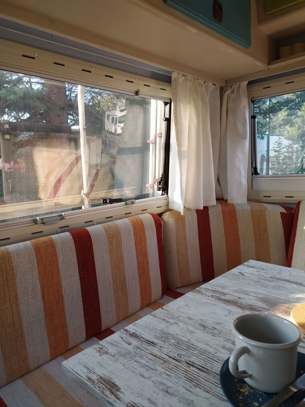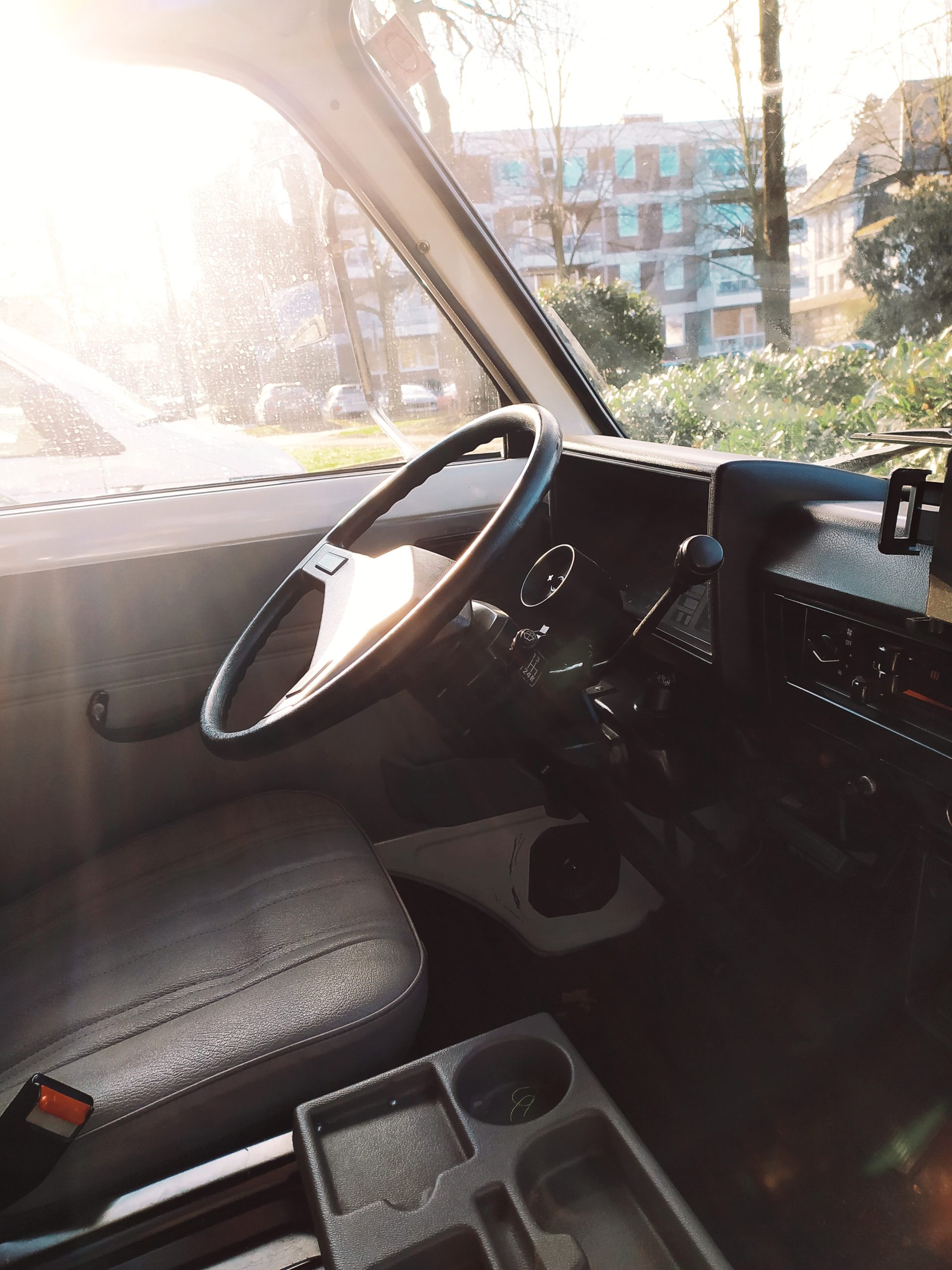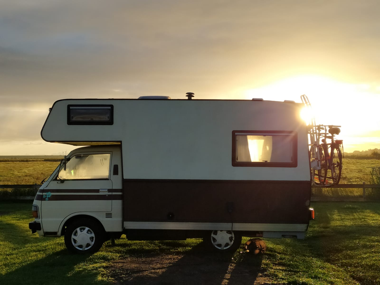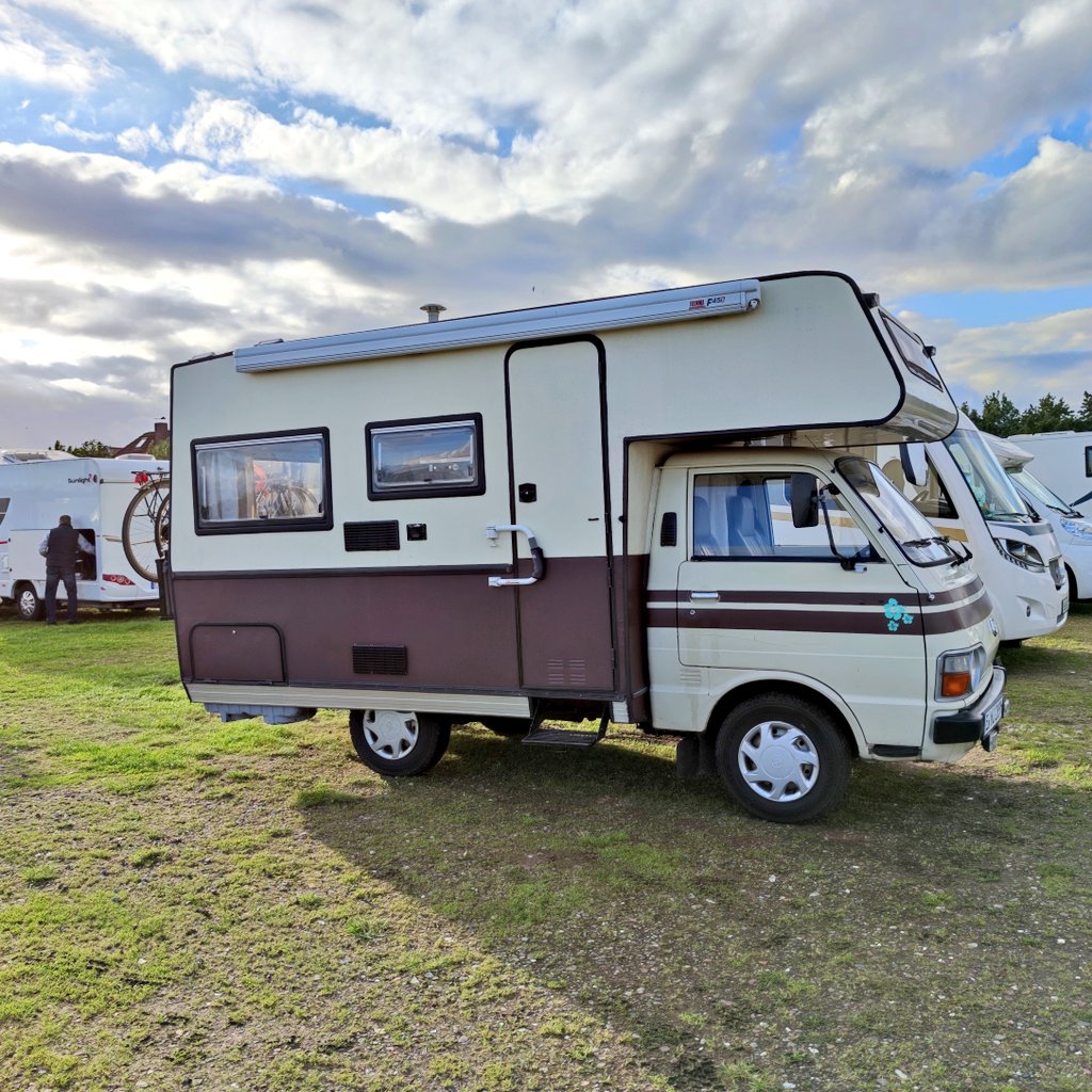 Unser Wohnmobil ist ein Toyota Hiace H11 (1,6 Benziner) von 1983 mit Aufbau von Frankia. Sein Kilometerstand ist wegen des leicht defekten Tachos wohl nur noch zu erahnen, liegt aber auf jeden Fall deutlich über 150.000 km. Wir nennen das Fahrzeug liebevoll „Toyo“, da es nicht nur auf den ersten Blick ein kompaktes, fast niedlich erscheinendes Wohnmobil ist. Zwischen den neueren Artgenossen verschwindet es auf dem Stellplatz nahezu ganz, zieht aber trotzdem relativ schnell Interessierte an. Zum heutigen Zeitpunkt sind nur noch wenige seiner Art unterwegs, auch verglichen mit dem ihm sehr ähnlichen Mitsubishi L300. Das sorgt meistens rasch für spannende Gespräche auf den Plätzen, auf die es uns verschlägt.