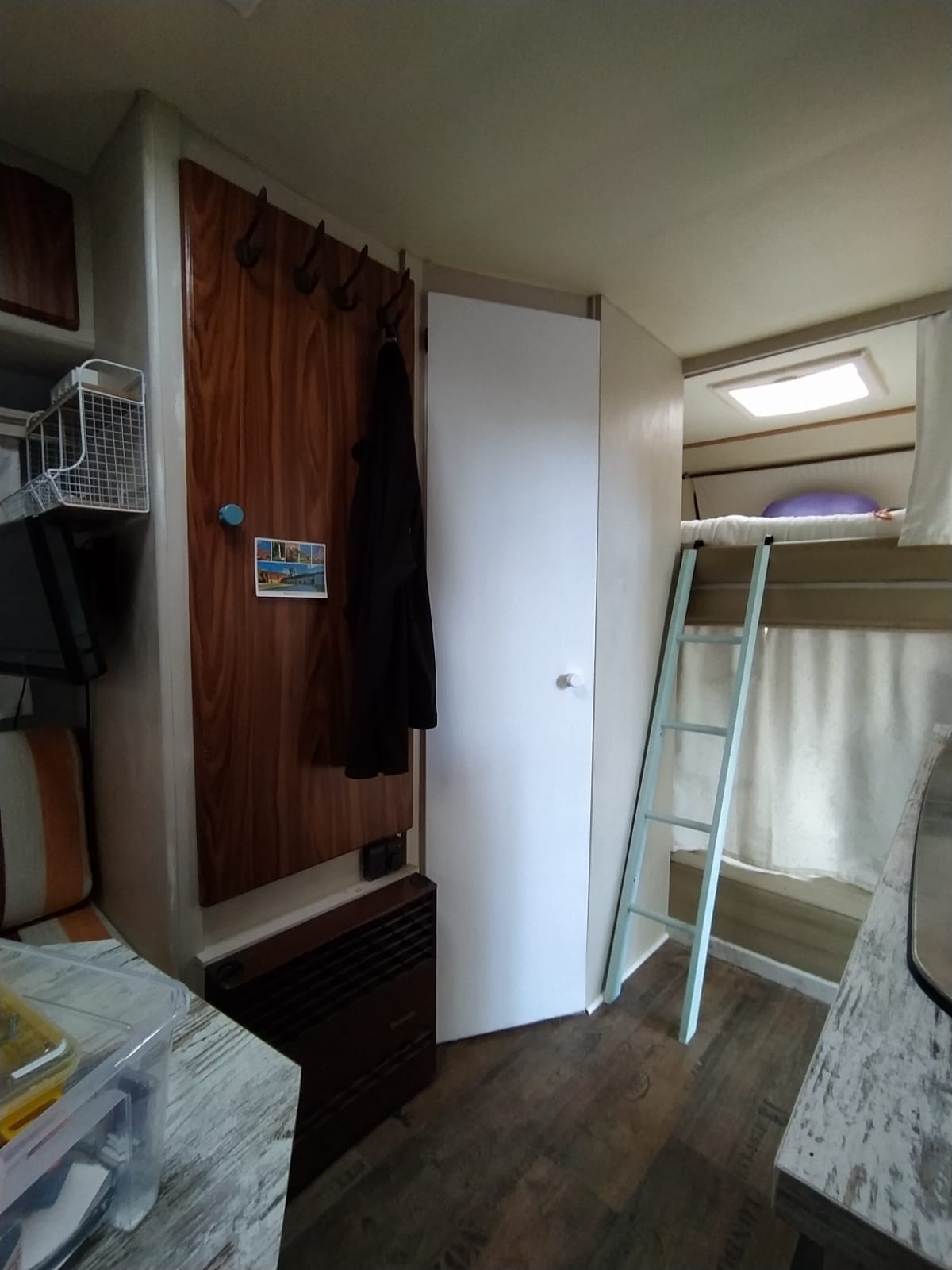 [adrotate banner=“1″]Er erschien uns auf den ersten Blick so kurios und erhaltenswert, dass uns schnell klar wurde: Das wird unser Projekt. Die Vorbesitzer hatten jedoch einen recht seltsamen Geschmack, was die Farbwahl für Schränke und Wände betrifft. Der schöne Originalholz-Look war mit bunten Pastelltönen überstrichen und wir haben uns schnell dazu entschlossen, mit einer am Original angelehnten Holzfolierung den Innenraum wieder mehr nach 1983 aussehen zu lassen. Kleinere Umbauten an Alkoven und Nasszelle rundeten die ersten Arbeiten ab. Aktuell sind wir dabei, die Kantenleisten mit zugehörigen Leistenfüllern zu erneuern – eine lebenserhaltende Maßnahme für den originalen Frankia-Aufbau. Bevor der TÜV einen Blick auf das Fahrzeug wirft, werden wir wahrscheinlich noch einen neuen Endschalldämpfer verbauen, um uns danach auf hoffentlich viele weitere Touren mit unserem Toyo freuen zu dürfen.