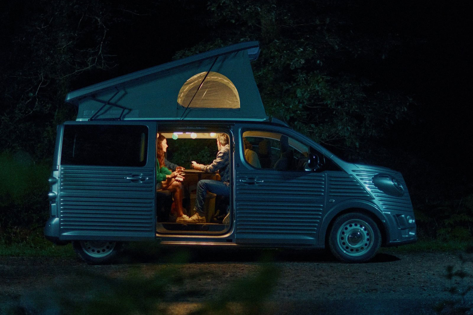 Der Type Holidays basiert auf dem 5,30 Meter langen SpaceTourer, der mit zwei verschieden starken Dieselaggregaten und als Handschalter oder mit Automatik zu haben ist. Bei Bravia Mobil in Slowenien lässt Citroën den Van zum Camper umbauen – mit Aufstelldach inkl. Bett, Schlafbank fürs zweite Bett, drehbaren Vordersitzen, Möbelzeile mit Kocher, Spüle und Co. Die Frisch- und Abwasserkanister fassen jeweils zehn Liter, es wird eine 2,8-Liter-Gasflasche verwendet und für Wärme sorgt eine Dieselstandheizung.