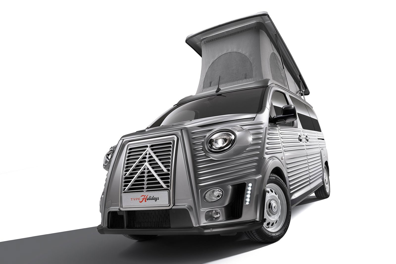 Denn der Type Holidays wurde vom italienischen Karosseriebauer Caselani mit allerlei Anbauteilen bestückt. Im Tuning-Umfeld würde mal wohl von einem Widebodykit sprechen. Fest steht: Nach dem Umbau erstrahlt der Retrocamper im komplett neuen Look und erinnert stark an den Citroën Type H, der von Ende der 40er Jahr bis in die 80er gebaut wurde. Und ganz ehrlich? Mehr auffallen als mit diesem Umbau könnt ihr auf dem Campingplatz nicht.