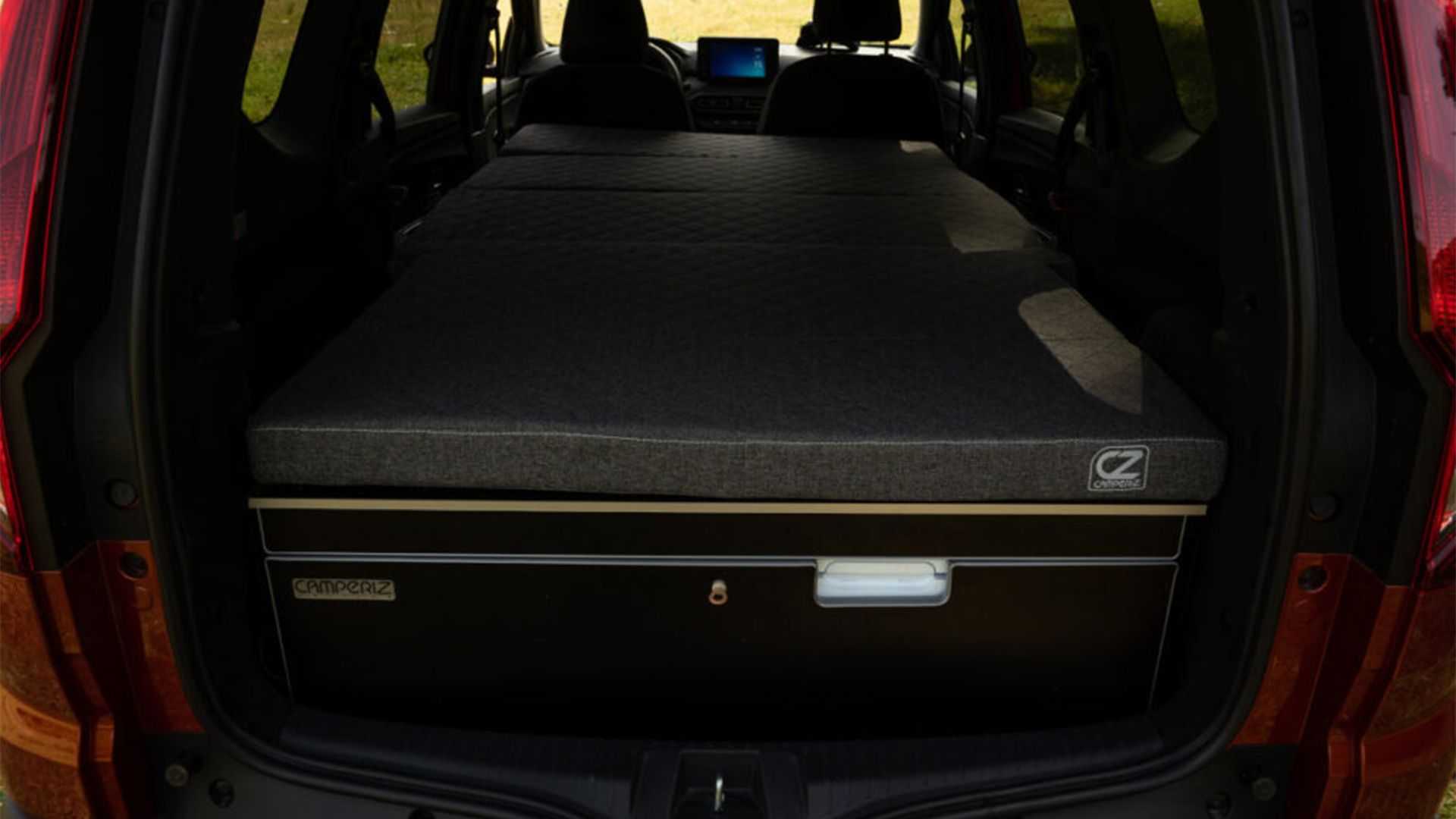 Ihr erinnert euch an den Mini-Camper von Camperiz auf Basis des Dacia Dokker? Nun legt die spanische Firma nach und bietet auch für den neuen und von der Autopresse hoch gelobten Dacia Jogger einen Ausbau zum Mini-Camper an. Inklusive Basis-Fahrzeug soll der Dacia Jogger Camperiz bei knapp unter 24.000 Euro liegen. Dafür gibt’s dann neben dem Jogger mit 100-PS-Benziner und Automatik ein Heckbett-Modul mit herausnehmbarer Matratze und 60-Liter-Staufach, LED-Beleuchtung im Innenraum, eine Outdoor-Dusche, einen 12-Liter-Frischwassertank sowie eine zusätzliche 100-Ah-Batterie. Serienmäßig mit an Bord sind außerdem ein 15-Liter-Kompressor-Kühlschrank, ein portabler Gaskocher, zwei Stühle sowie ein Tisch. Optional können eine Webasto-Heizung, ein Wechselrichter mit 150 Watt sowie weitere äußere Anbauteile geordert werden.