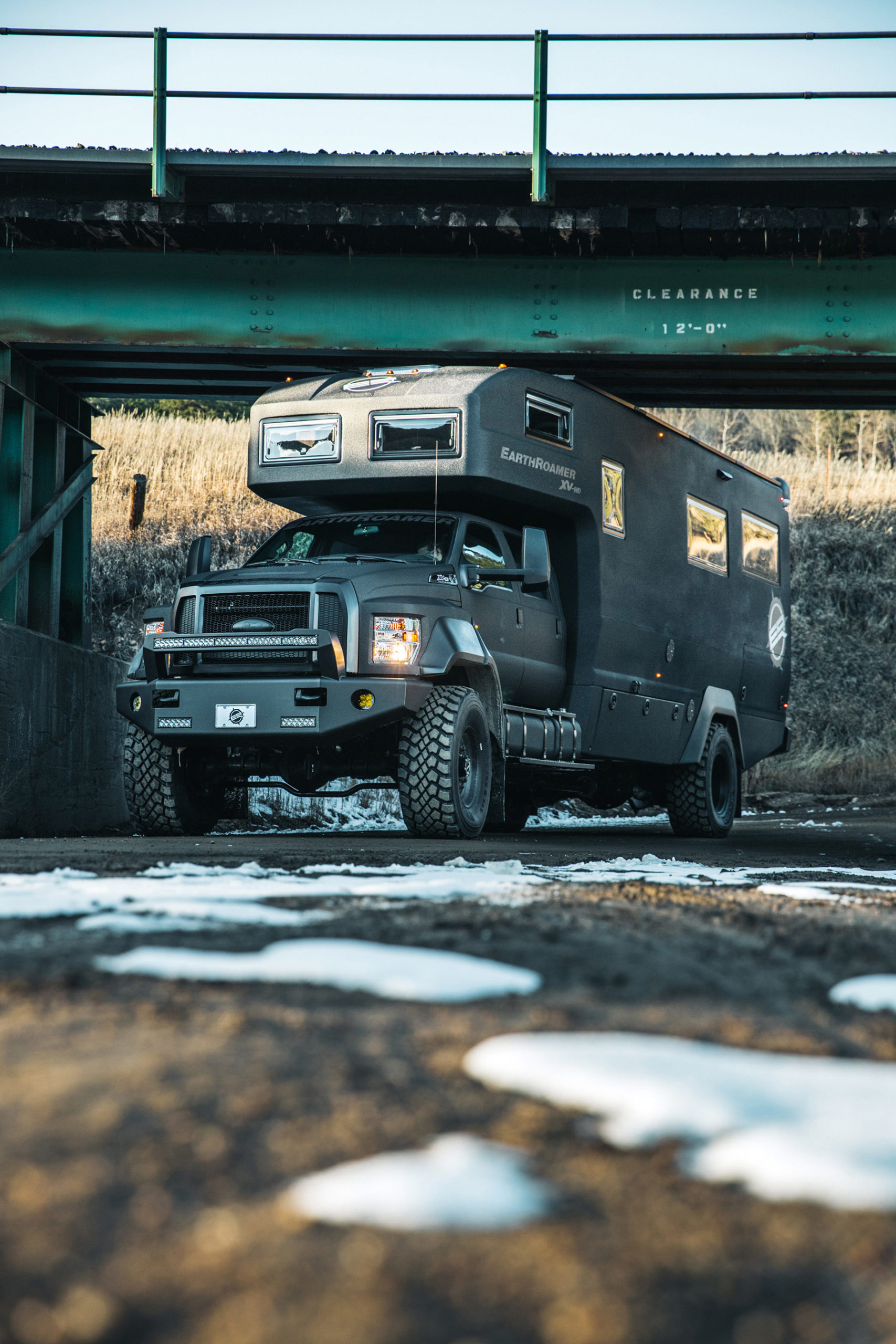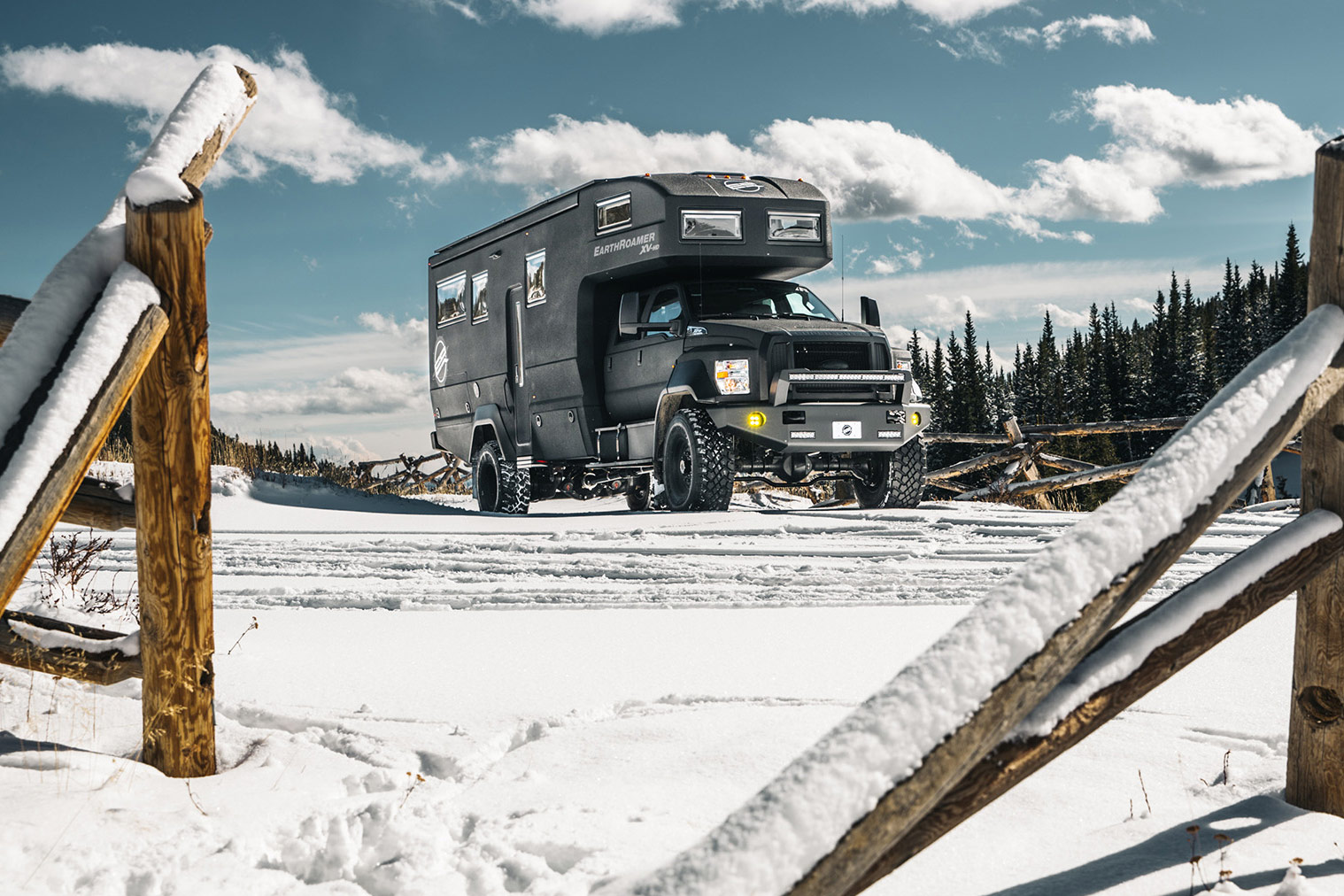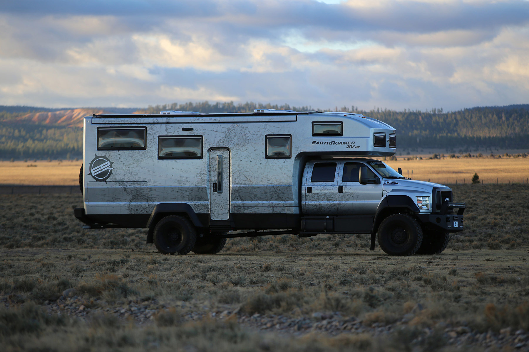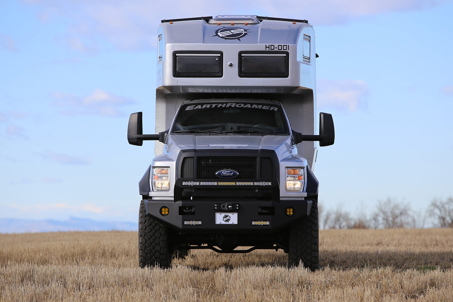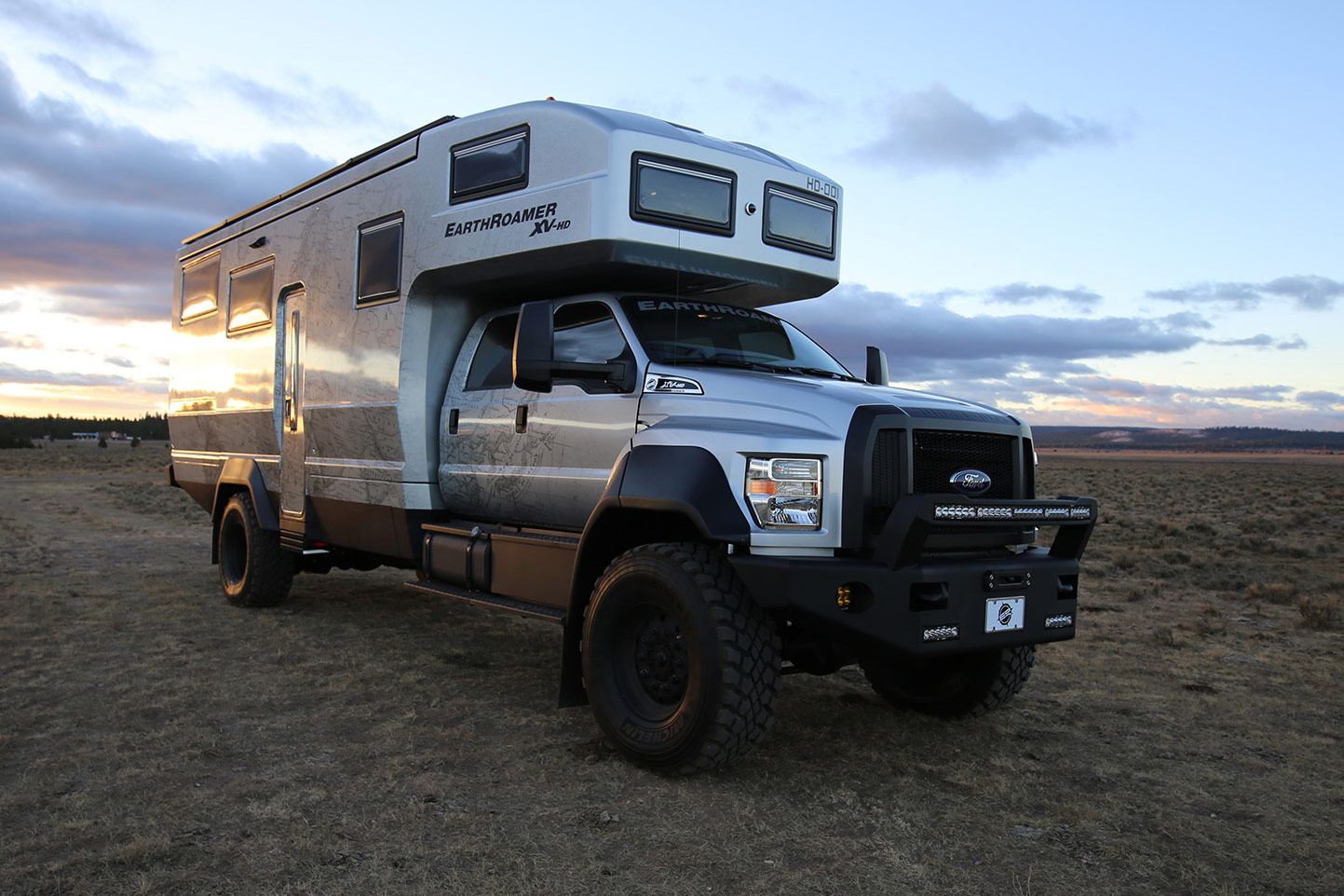 Wer in Deutschland nach einem Expeditionsmodell im XL- oder XXL-Format sucht, der kommt an Firmen wie Unicat, Bocklet oder Orangework nicht vorbei. Wer auf „Made in USA“ steht, der sollte indes einmal bei der Firma EarthRoamer vorbeischauen. Denn die Jungs aus Colorado haben unter anderem den EarthRoamer XV-HD auf Basis des Ford F-750 im Angebot. Und dieses knapp elf Meter lange Allrad-Gefährt kann sich durchaus sehen lassen.