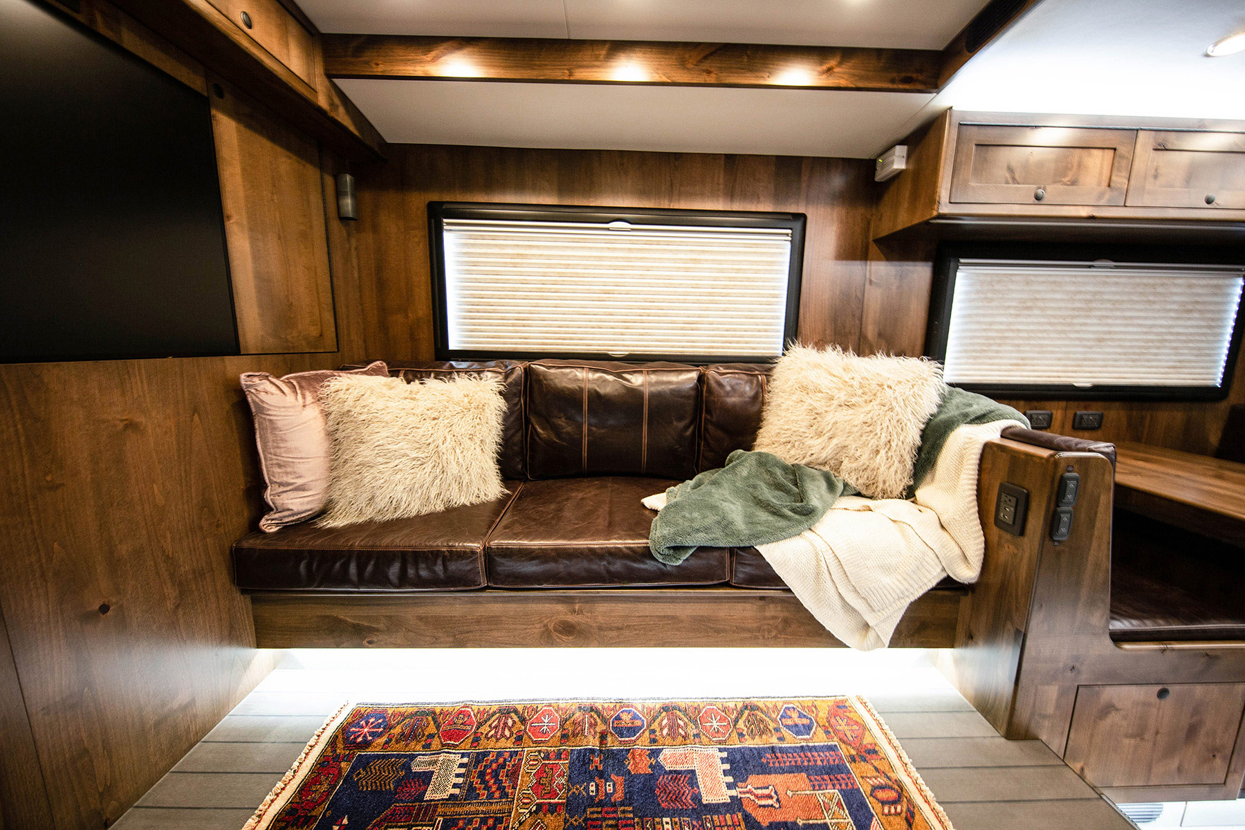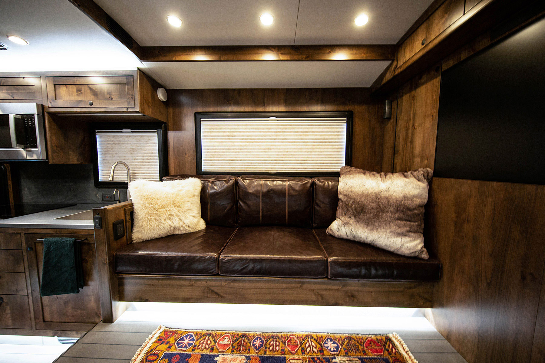 Für Vortrieb sorgt ein V8-Diesel mit 330 PS, der es allerdings mit einem Kampfgewicht von 15 Tonnen zu tun bekommt. Das dürfte vor allem dem Ausbau geschuldet sein, denn hier wurde nicht gekleckert, sondern geklotzt. Mit dabei sind unter anderem Zentral-Staubsauger, Waschmaschine und Trockner sowie massive Hölzer und Steine. Wer mit dem EarthRoamer XV-HD unterwegs ist, meint mit einem „Herren-Club“ auf Reisen zu sein.