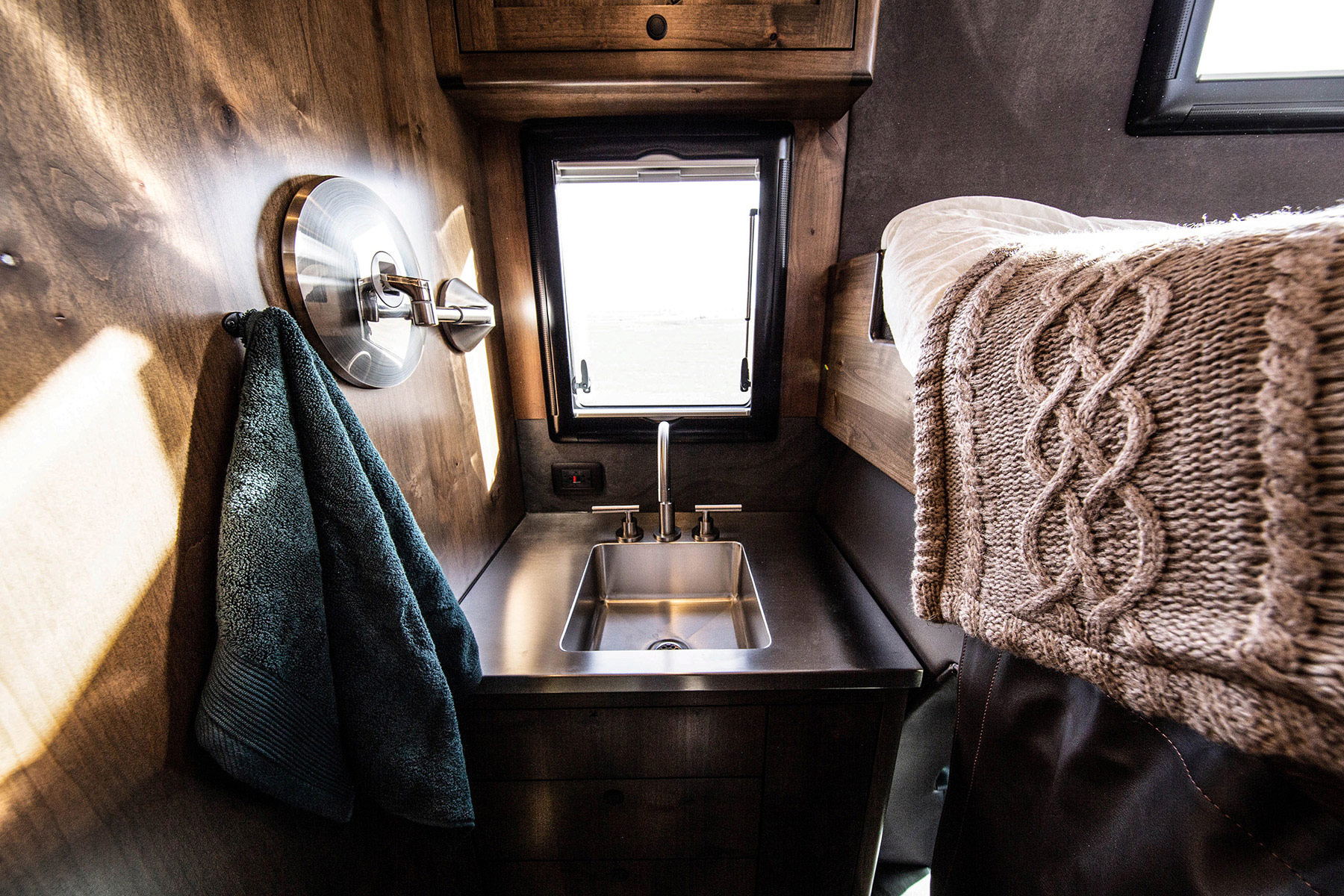 Neben der imposanten Erscheinung des 4,14 Meter hohen Campers sind es vor allem die inneren Werte, die das 1,5 Millionen Dollar teure Mobil zu einer echten Alternative machen könnten. Immerhin sind es die 950 Liter Frischwasser sowie die 435 Liter Diesel, die für eine Expedition wichtig sind. Und auch die 2.100 Watt „leistende“ Solaranlage mit 20 kWh fassenden Litium-Ionen-Batterien helfen der Autarkie.