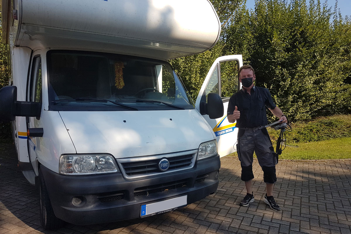 Und weil ich den Gründer und Chef von SKN Tuning Ralf Nissel durch unser evocars Magazin schon 15 Jahre kenne, war auch klar, wen ich wegen meines Vorhabens zuerst kontaktiere. Doch natürlich habe ich auch Zweifel, ob man bei einem ebenfalls 15 Jahre alten Camper, der auch schon erwähnte 110.000 Km auf dem Tacho hat, solch einen Eingriff überhaupt noch machen lassen sollte. Ralf zerstreut diese Zweifel nachhaltig. Immerhin programmiert er bereits seit über 30 Jahren Steuergeräte und hat diverse Kundenfahrzeuge mit Fahrleistungen jenseits der 300.000 km in der Datenbank. Also gebe ich mir einen Ruck, vertraue auf die Jahrzehnte lange Expertise des Profis und mache einen Termin.