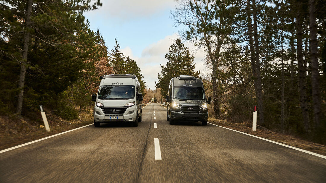 Ihr wollt mit eurem Campervan ohne Angst auch mal auf schlechter befestigten Wegen oder am Strand unterwegs sein? Dann empfiehlt sich natürlich ein praktischer Allantrieb. Eben diesen bietet im neuen Modelljahr Etrusco bei seinem Etrusco CV 600 DF auf Basis des Ford Transit (5,98 m lang / 2,06 m breit). Erhältlich ist der Campervan mit einem klassischen Van-Grundriss (Doppelbett hinten quer, Bad auf der Fahrer-, Küche auf der Beifahrerseite) und mit zwei verschiedenen Motorisierungen.