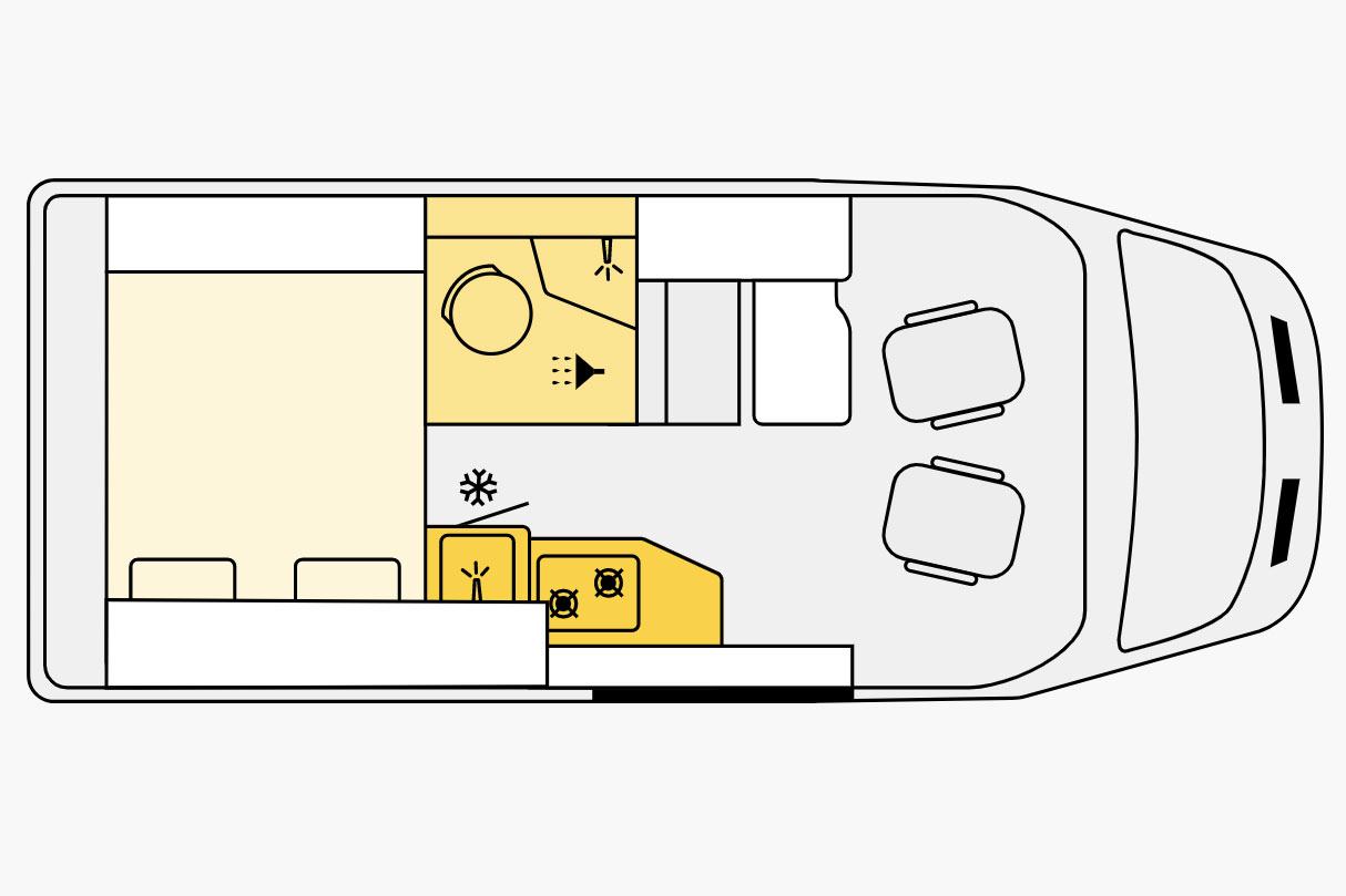 Als Maximalgewicht gibt Etrusco für das neue Modell 3,5 Tonnen an, fahrbereit sollen rund 3,0 Tonnen auf der Waage stehen. Da man den CV 600 DF 4×4 zwar zu viert fahren (vier Sitzplätze) aber nur mit maximal 3 Personen nächtigen kann (Schlafmöglichkeiten), dürfte das also klargehen.