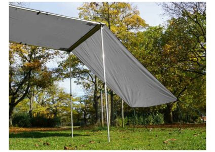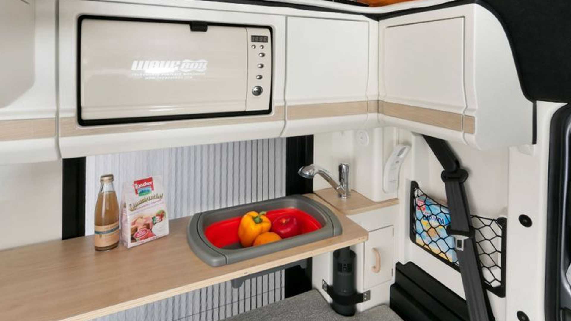 Aufgrund der Breite des Vans ist zu zweit nebeneinander zu schlafen sehr sportlich, um nicht zu sagen unbequem. Aber dafür gibt es die Lösung mit dem integrierten Dachzelt, wo eine zweite Person schlafen kann. Außen schmückt eine riesige Fiamma-Markise den kleinen Camper. Sogar an einen Fahrradgepäckträger für die Heckklappe wurde gedacht. Alles in allem ist hier ein Komplettpaket erhältlich, das eigentlich keine Wünsche offenlässt.