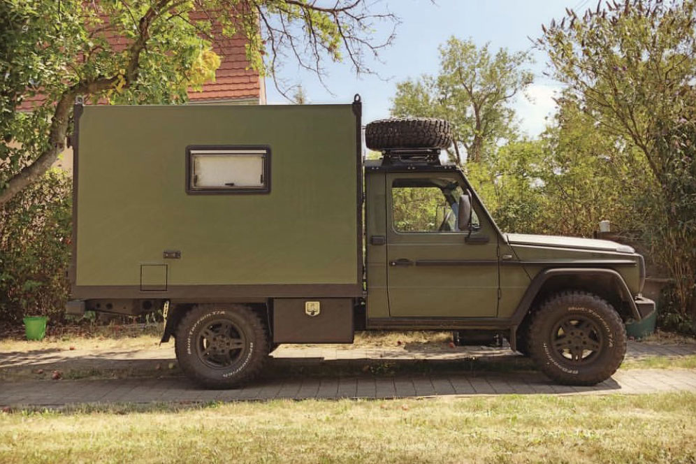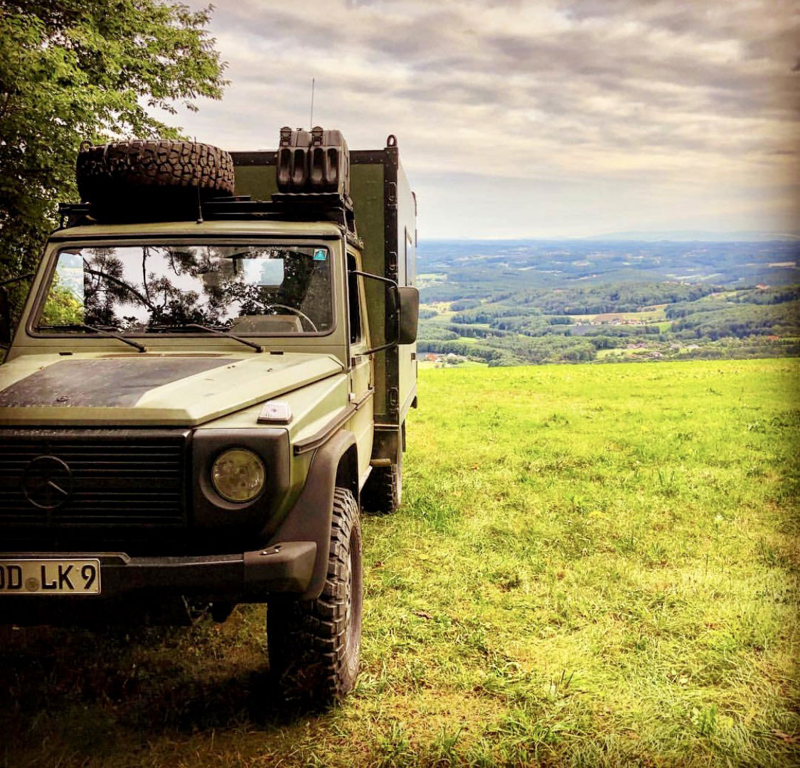 Geht nicht? Gibt’s nicht! Zumindest nicht für Dirk und seinen „Momo“. Denn eben dieser ist ein von der Bundeswehr ausgemusterter „Sani-Wolf“ auf Basis der Mercedes G-Klasse. Und die kommt bekanntlich fast überall durch. Gleiches dürfte also auch für Momo gelten, der gerade einmal 48.000 Kilometer auf dem Tacho hat – ein Witz für den verbauten 2,5-Liter-Fünfzylinder-Diesel unter der Haube. Die nachträglich von Dirk montierte MT-Bereifung von BF Goodrich dürfte das ihre zur Geländegängigkeit beitragen.