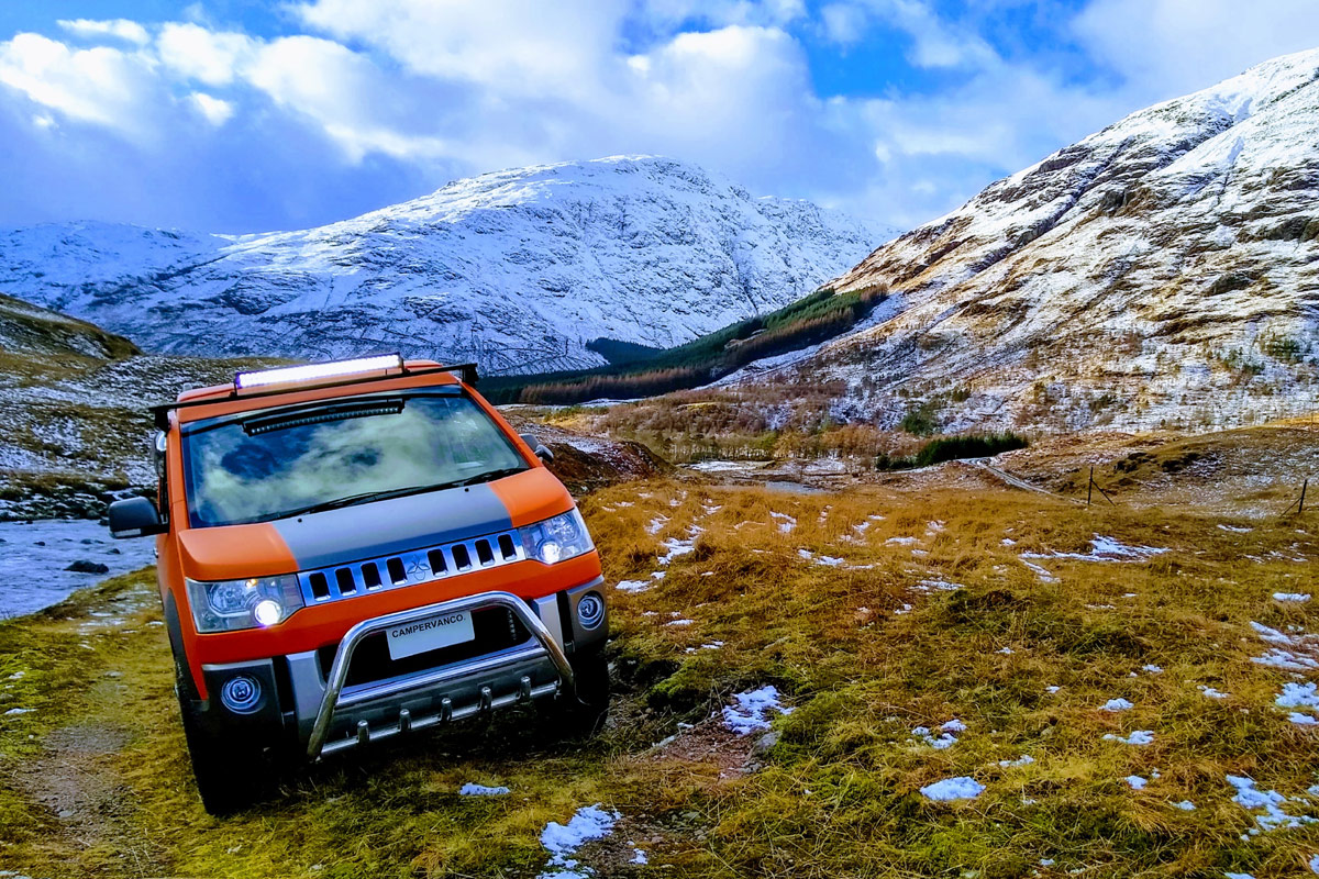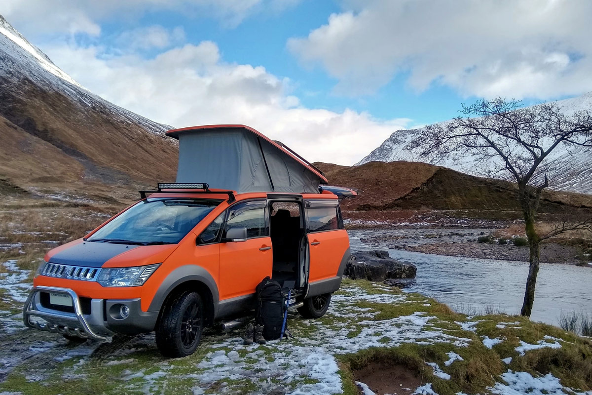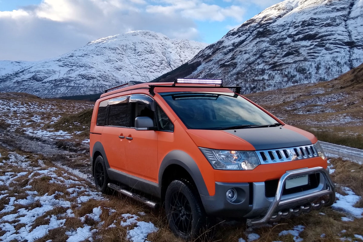 Was, ihr kennt den Mitsubishi Delica D:5 nicht? Schämt euch. Immerhin ist der kompakte Van eine echte Größe auf dem Camper-Van-Markt – zumindest außerhalb von Deutschland. Wer sich solch einen Exoten zulegen will, der kann sich unter anderem an die Firma „Campervan Co“ aus Grangemouth in Schottland wenden. Die Jungs verwandeln den aus Japan importierten Allrad-Van in einen „D:5 Terrain“, mit dem man erstens tüchtig auffällt und zweitens auch abseits der Wege unterwegs sein kann. Ausgelegt ist der kernige Camper für vier Personen (wie man das so von California, CrossCamp und Co. kennt), gekocht wird auf einem zweiflammigen Induktionskocher, Solar-Panele auf dem Dach sorgen für Strom und die Lichtleiste über der Windschutzscheibe dürfte die obig erwähnte Strecken abseits der Wege ordentlich erhellen.