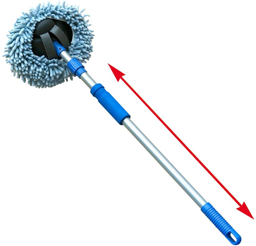 Reinigt äußerst schonend und gründlich aufgrund seines Microfaser-Zottelschwammes. Durch Abschrauben kann dieser auch ohne Teleskopstab mit der Hand zum Reinigen benutzt werden. Teleskopierbar von 70 – 120 cm.