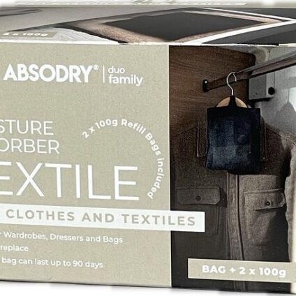 ABSODRY® DUO FAMILY in der Einweg-Minimalausführung: Der kleine 100 g-Beutel wird einfach in seiner im Lieferumfang enthaltenen Hülle mit zur Kleidung in z. B. die Schublade oder die Sporttasche gelegt. Er bindet die Feuchtigkeit auf kleinsten Flächen, damit besonders wichtige Wäschestücke möglichst lange frisch bleiben und muffiger Geruch verhindert wird.Der Entfeuchter des schwedischen Herstellers Everbrand Sweden verwendet feuchtigkeitsabsorbierende Granulatbeutel, um überschüssige Feuchtigkeit zu…
