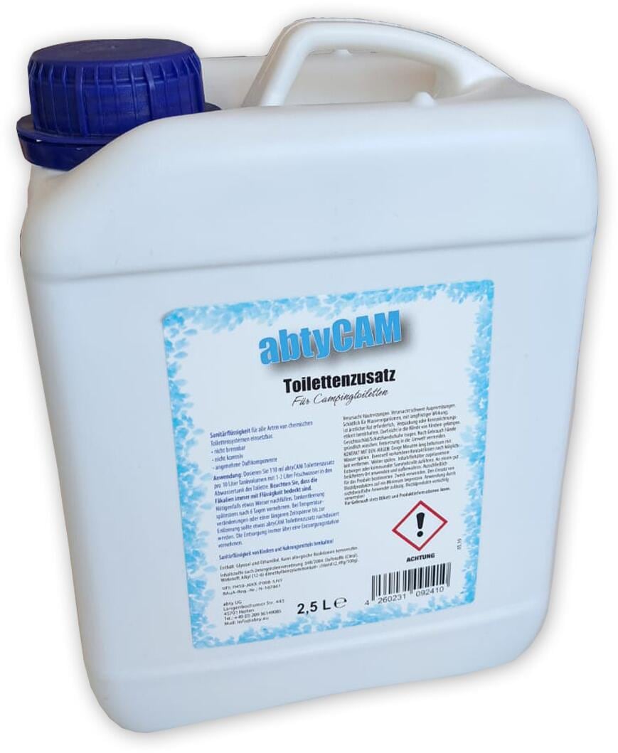 Der abtyCAM Toilettenzusatz ist ein Fäkalien-Zersetzer für chemische Toiletten und bestens für den Einsatz ohne festen Wasseranschluss geeignet. Das Produkt hat einen angenehmen Zitrusduft, der auch bei höheren Temperaturen über 35 °C hält. Zusätzlich kann abtyCAM Toilettenzusatz in den WC-Spülwassertank gegeben werden und beugt so der Verschleimung im WCSpülwassertank vor. Gleichzeitig wird auch hier ein angenehmer Zitrusduft versprüht.Der Toilettenzusatz ist für alle Arten von chemischen…