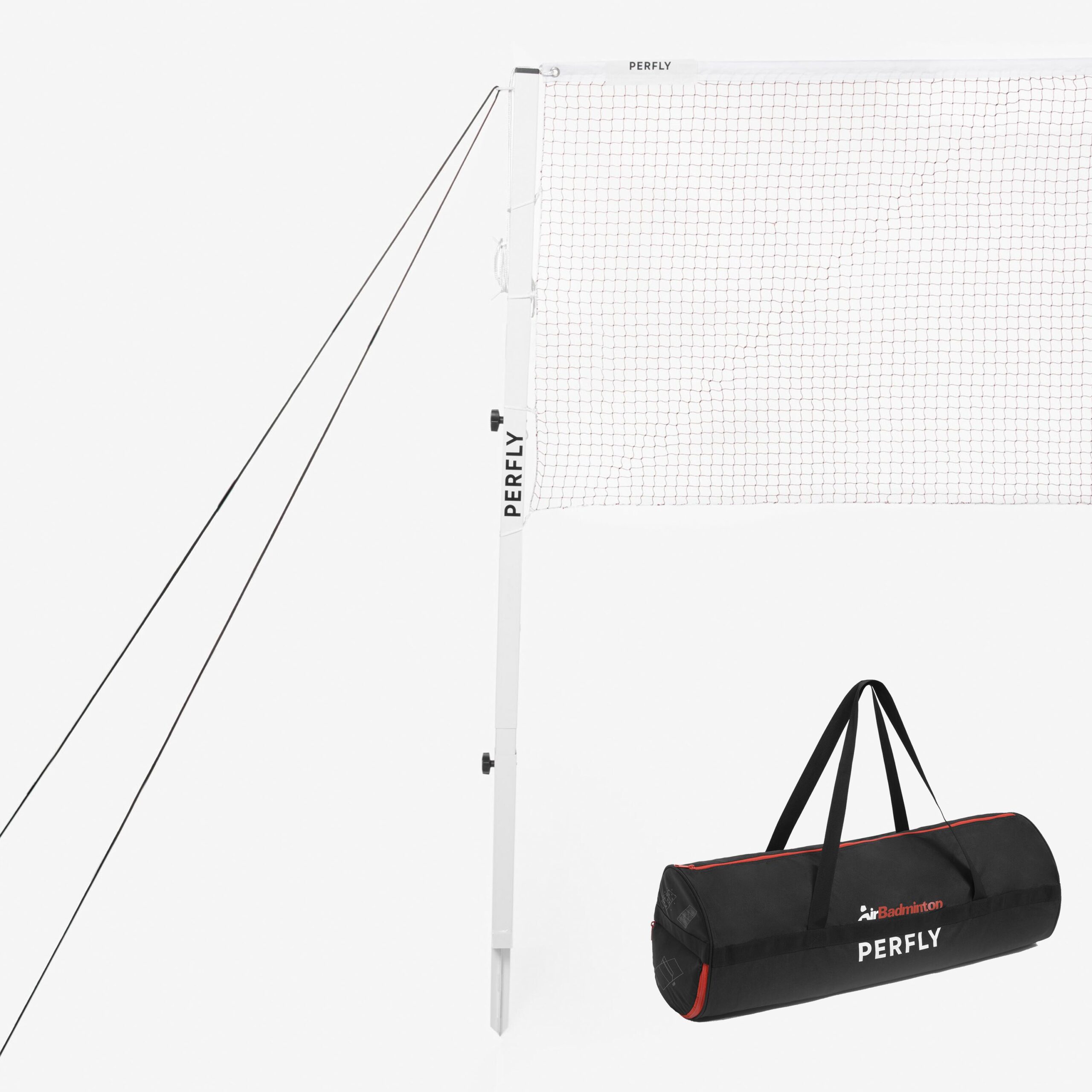 Einfach aufzubauendes und zu transportierendes AirBadminton-Set. Die Tasche enthält zwei Pfosten, Linien und ein Netz für das Outdoor-Spiel auf Gras oder im Sand. Auch für Wettkämpfe geeignet. Einfacher Auf- und Abbau::Einfach auf Gras oder im Sand zu montierendes AirBadminton-Feld (5–10 Minuten) |Einfacher Transport::Einfacher Transport in der 75 cm langen Tasche |Widerstandsfähigkeit::Robuste, zusammensteckbare Pfosten aus Metall |Gewicht::Dieses AirBadminton Set wiegt 9 kg.