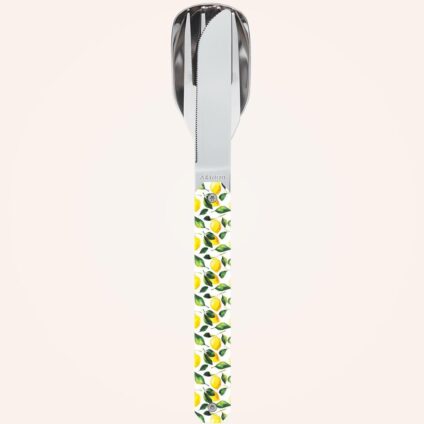 Besteck, das nach Sommer, Limonade und Gourmetpausen im Schatten von Kirschbäumen duftet… Besteck aus martensitischem Edelstahl 2CR14, hochglanzpoliert. Bestehend aus einem großen Löffel, einer 4-zahnigen Gabel und einem Messer mit einer mikroverzahnten Klinge. Dekorierter, transparenter Polymer (PC)-Griff. Fixierung mittels verbautem Magnet. Geliefert mit einem Trageetui aus Hartpolypropylen (PP). Spülmaschinenfest.Hochglanzpoliertes Besteck aus martensitischem Edelstahl 2CR14Bestehend aus Löffel,…