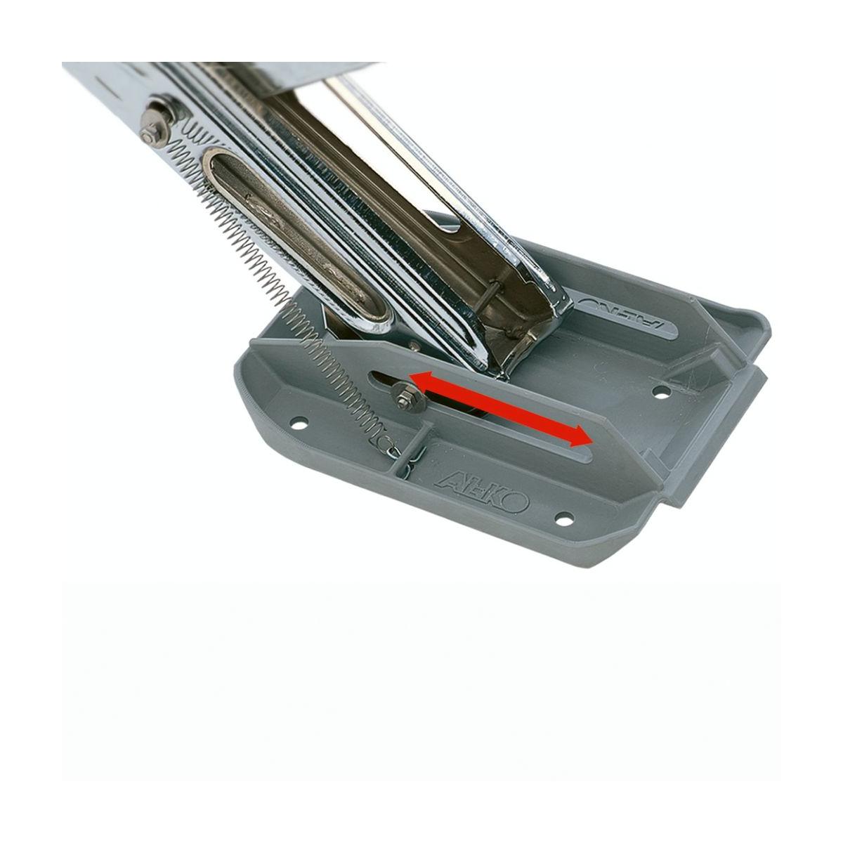 Verhindert Einsinken oder Abrutschen der Stützen Sicherer Stand Mit der großen Standfläche (200 x 180 mm) und den Querrippen verhindert der AL-KO big foot™ ein Wegrutschen oder Einsinken der Stützen und sorgt für absolut sicheren Stand des Wohnwagens. Der Abstützfuß besitzt eine Tragfähigkeit von statisch maximal 1250 kg. Geringer Platzbedarf Im Fahrtbetrieb liegt der AL-KO big foot™ federunterstützt formschlüssig an der Stütze an. Funktionell Durch die Langlochbohrung gleitet die Stütze bei…