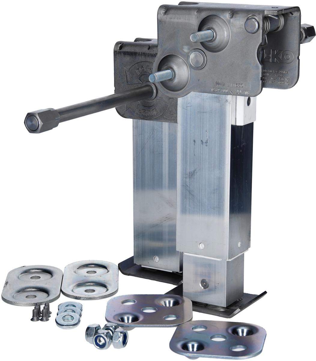 Mechanische Hubstützen für Fahrzeuge mit AL-KO Rahmen bzw. Rahmenverlängerung. Fester Stand auf jedem Untergrund. Dank der stabilen Bauweise ist eine sichere Standfestigkeit auf Rasen, Kies und Asphalt gewährleistet. Produktmerkmale: Robuste Hubstütze für festen, sicheren Stand Schnelle, komfortable Bedienung Selbstständiges Spannen der Hubstütze beim Hochdrehen Sicherheitsmechanismus bei Anfahrt trotz ausgeklappter Stützen Technische Daten: Tragfähigkeit statisch: 1.000 kg Tragfähigkeit dynamisch: 500…