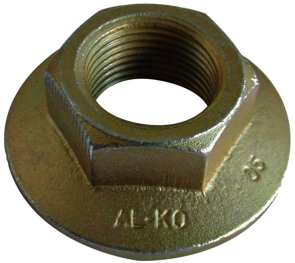 Flanschmutter für Bremstrommel. Flanschmuttern müssen immer erneuert werden, Anzugsmoment: 260 – 280 Nm. Technische Daten: Material: Vollverzinkt Verarbeitung: verzinkt Größe: M27 x 2,00 mm Inhalt: 1 Stück Packmaß: 21 × 57 × 31 mm Gewicht: 100 g