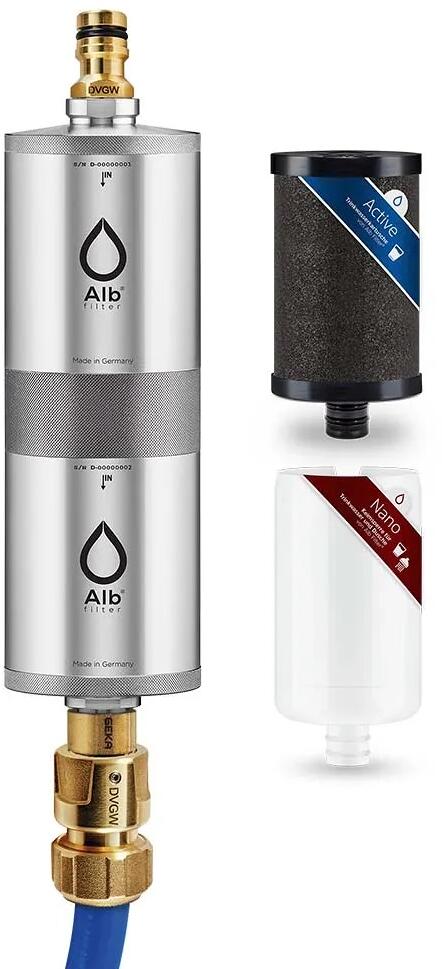 Alb Filter Fusion (Active & Nano) – Camping-Set: Mobil Trinkwasserfilter für Wohnmobile, Camper und Mobilheime. Der Alb Filter in der Fusion Ausführung vereinigt zwei Filterstufen in einem kompakten, zuverlässigen System. Je nach Bestückung der Filterstufen verbessern oder komplettieren Sie alle Vorteile der einzelnen Filterkartuschen von Alb. Je nach Wasserqualität reicht eine Filterkartusche bis zu sechs Monate gemäß DIN 1988. Das Filterset muss nicht im Wohnmobil verweilen, wenn Sie nicht auf Reisen…