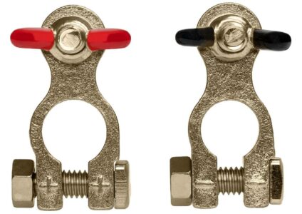 Die hochwertigen Batterie-Polklemmen sind mit PVC-teilbeschichteten Flügelmuttern in rot und schwarz ausgestattet. Damit ist eine schnelle Montage und Demontage möglich. Besonders geeignet für Saisonfahrzeuge, Bootsbatterien, Motorräder etc. Batterie-Polklemmen mit Flügelmuttern (PVC teilbeschichtet rot/schwarz) 1 Paar Technische Daten Material: Messing Für Kabel bis: 10mm Durchmesser Spannung: 12V + 24V Gewicht: 0.2 kg Farbe: rot/schwarz Lieferumfang: 2 Batterie-Polklemmen
