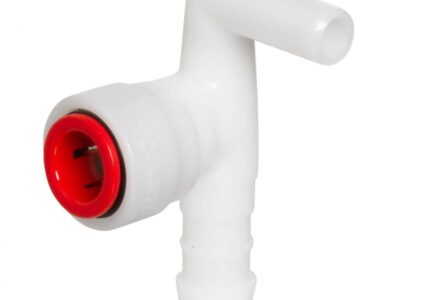 Warmwasseranschluss von Alde. Winkel mit eingebautem Rückschlagventil, zur Belüftung beim Entleeren des Warmwasserbereiters. Wird auf dem Warmwasser – Ausgang – Nippel (oben) montiert. Einschl. 0,5 m Schlauch an der Belüftung. Ersatzteil für Alde Compact 3010 Alde Teilenummer: 3010471