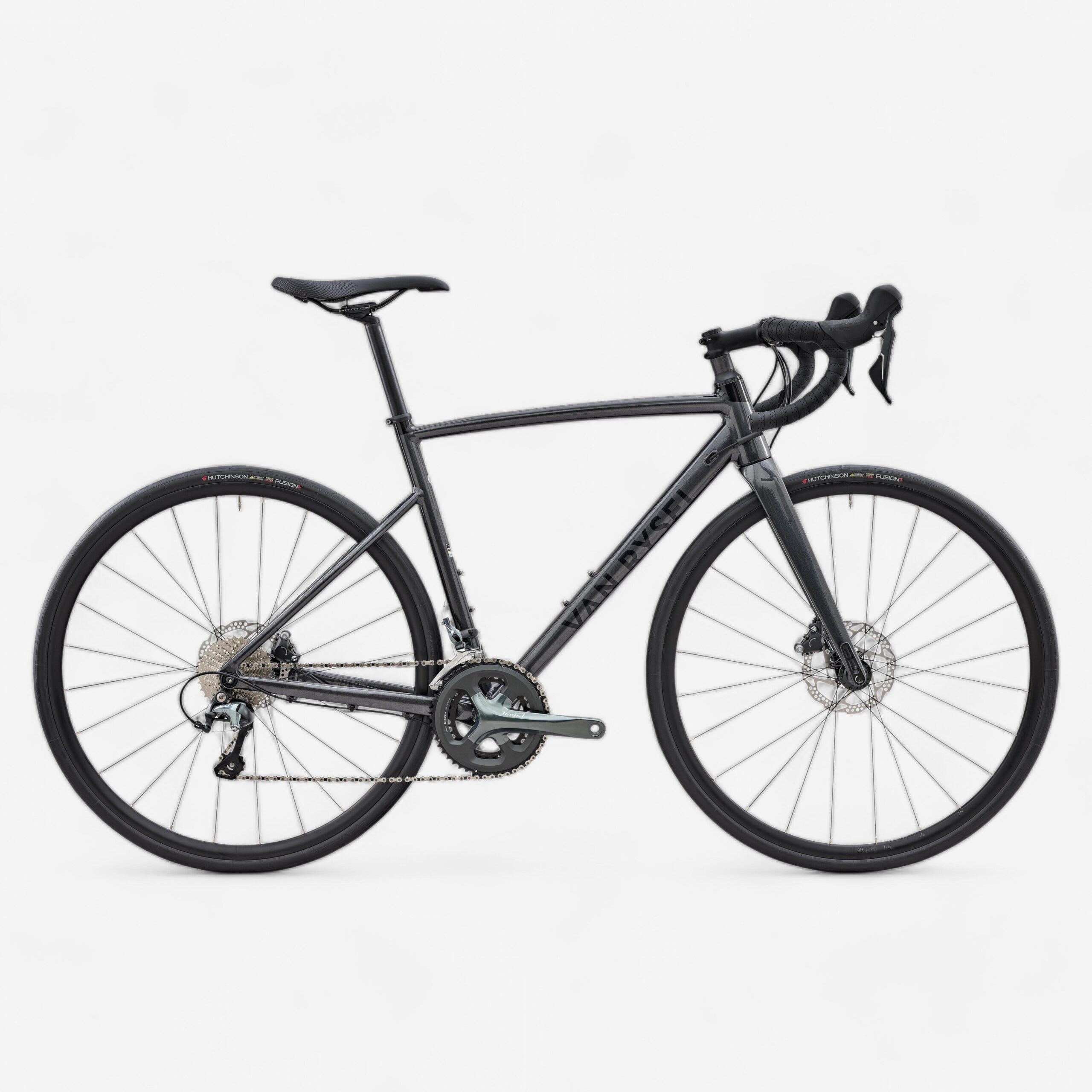 Vielseitigkeit::Gangschaltung Shimano Tiagra 2×10-fach, Kettenblätter 34/48 und Kassette 11/32|Bremsleistung::Hydraulische Shimano Tiagra Scheibenbremsen, 160 mm Scheiben vorne und hinten|Wirkungsgrad::Laufräder VanRysel Road Perf Tubeless Ready, Reifen Hutchinson 700 × 28C|Geringes Gewicht::Alurahmen und Carbongabel, 9,5 kg Fahrradgewicht in Größe M