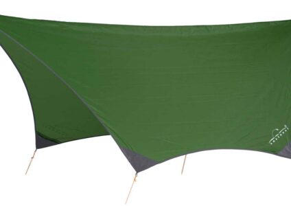 Das Regendach Traveller Tarp ist genau auf die Hängemattenmaße abgestimmt. Damit wird die Hängematte zum Outdoorbett! Das Tarp ist für viele AMAZONAS Hängematten geeignet. Inklusive Befestigungsmaterial und Verstellkarabiner. Durch die PUR-Beschichtung des Polyesters ist das Tarp extrem wasserdicht. Technische Daten: Wassersäule: 3000 mm Gewicht: 0,65 kg Material: 100 % Polyester Ripstop 210T, PU beschichtet Länge: max. 340cm, Seiten jeweils trapezförmig 168 x 340 x 168 x 150 cm Lieferumfang: Regendach…