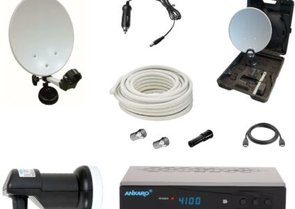 Für alle Camping-Freunde, die unterwegs oder auf ihrem Lieblingscampingplatz nicht auf den TV-Komfort verzichten wollen. Das Camping-Set bietet mobilen Empfang für Wohnmobil, Garten und Boot in digitaler Qualität. Die Aufstellung des Spiegels mit Hilfe des Saugfußes oder der Wandhalterung ist recht einfach. Dank des mitgelieferten Kompasses ist ein leichtes Auffinden des Satelliten gewährleistet. Der mitgelieferte ist ein einfach bedienbarer Receiver zum Empfang Ankaro ANK DSR 4100plus aller freien TV–…