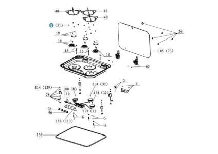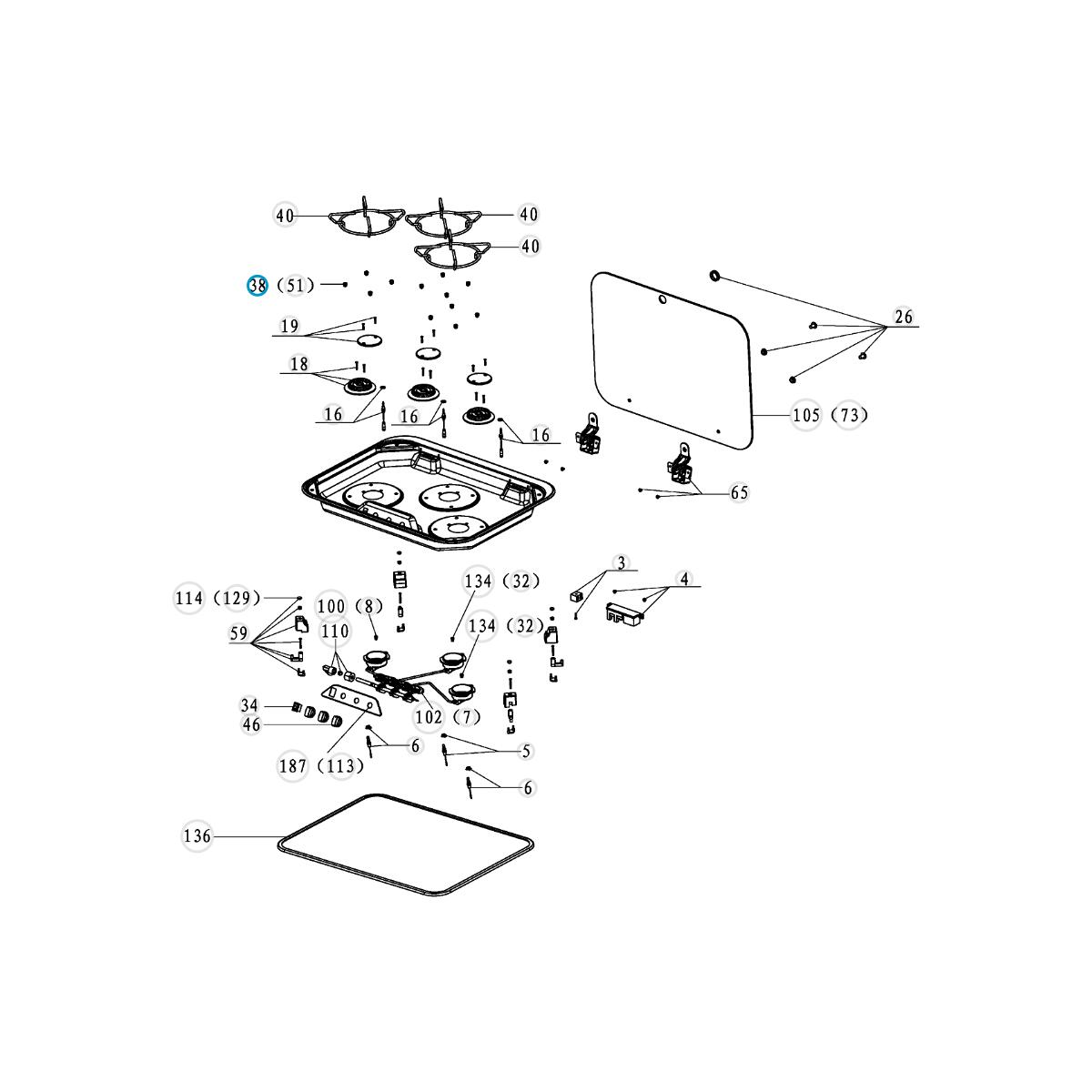 Anschlag für Gaskochfeld für HBG 2335/3445 & CE99-ZF Ersatzteil-Nr. 4453001403 Abbildung Nr. 38
