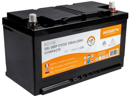 Wartungsfreie GEL-Deep-Cycle-Technologie mit Glas-Mikrofaser-Trennwänden. Kupferklemmen für die Automobilindustrie. Sehr geringe Selbstentladung (< 3% / Monat). Wartungsfreie GEL-Deep-Cycle-Technologie mit Glas-Mikrofaser-Trennwänden Kupferklemmen für die Automobilindustrie Technische Daten: Sehr geringe Selbstentladung (< 3% / Monat) 95 Ah Leistung über 20 Stunden (C20) Anschlussspannung: 12 V Kälteprüfstrom: 25 A 1000 Zyklen Leistung Dauerentladung: 600 W Maße (HxTxB): 17 x 19,5 x 33,5 cm Gewicht: 28...