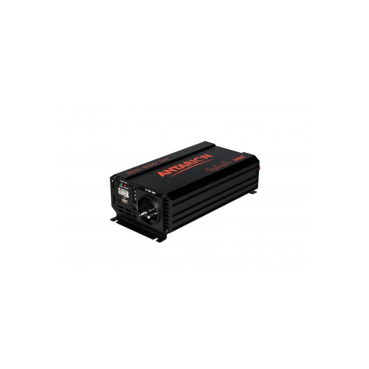 Wechselrichter liefern Strom zur Verwendung von Reisefön, Beleuchtung, Kühlboxen, Mikrowellen, Haushaltsgeräten und Elektrowerkzeugen. Eingangsspannung 10.5 – 16.5 V, Schutz gegen Überhitzung, Verpolung, Überlastung und Kurzschluss. Wirkungsgrad > 90 % Serienmäßig mit integrierter Netzvorrangschaltung ab 1.000 W und Fernbedienung ab 600 W Technische Daten: Spannung: 12 – 230 V Dauerleistung: 300 W Spitzenleistung: 600 W Maße: 23,8 x 6,6 x 11,8 cm Gewicht: 1,3 kg