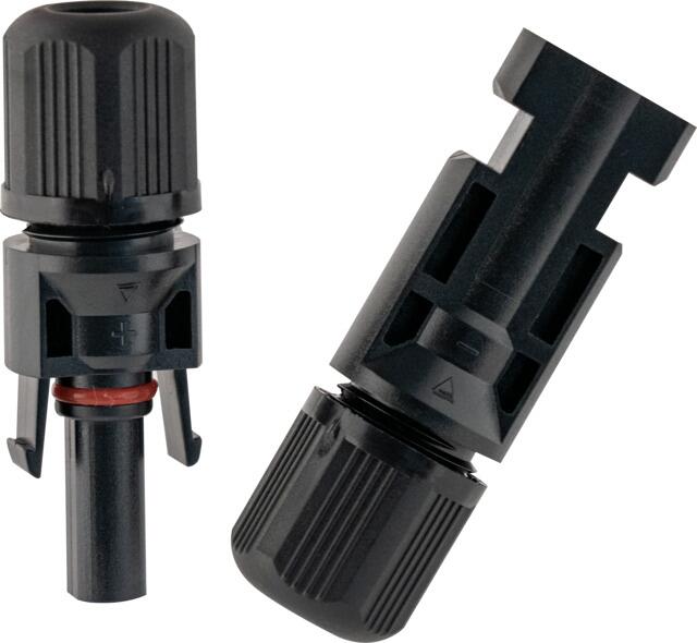 Wasserdichte Steckverbinder im MC4-Format für Solarmodule. Mit diesen Steckverbindern können Sie die gewünschte Kabellänge je nach Installation anpassen.Technische Daten:Farbe: schwarzLieferumfang: 2 Stück